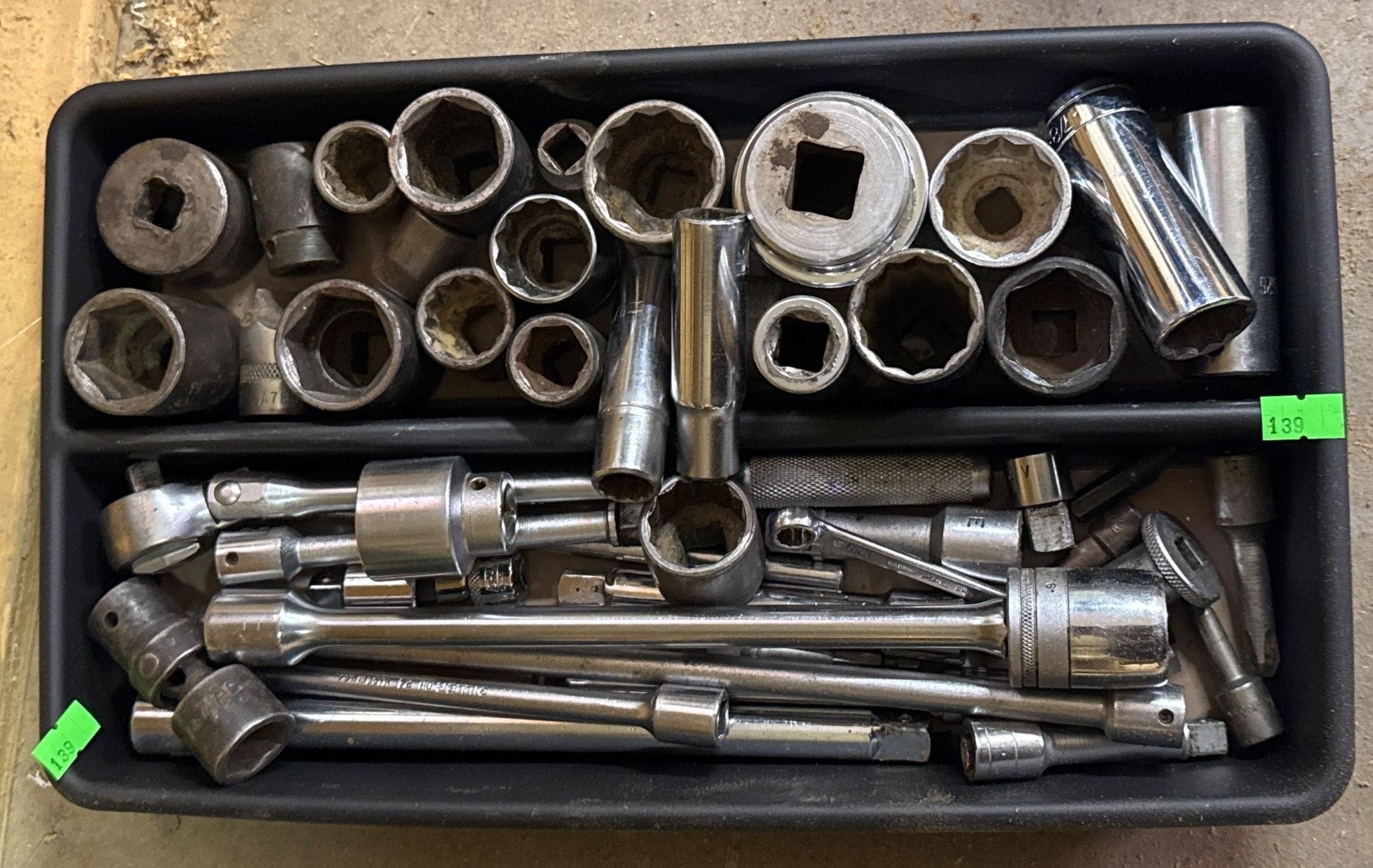 139 Tray of 3/8 and 3/4 Inch Drive Sockets and Accessories