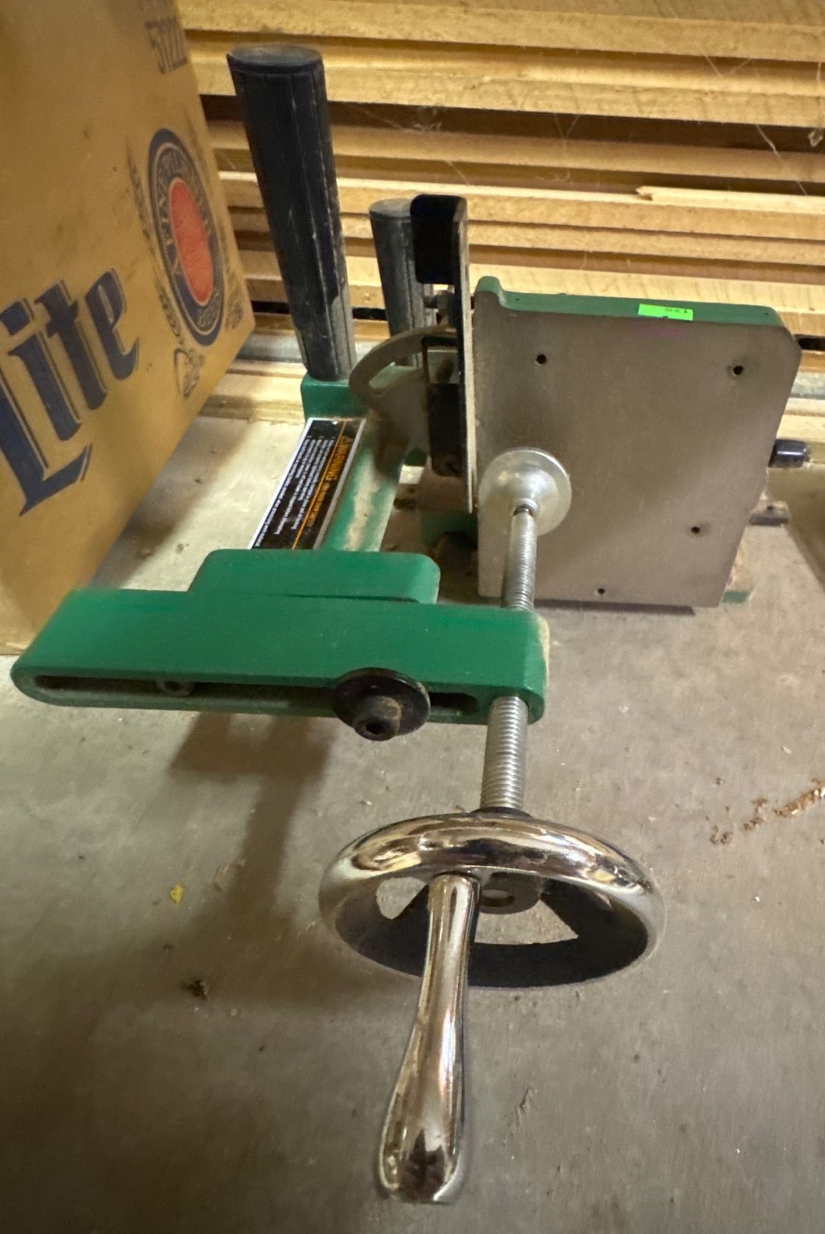 140 Green Metal Drill Press Vise with Rotating Handle and Adjustable Clamps