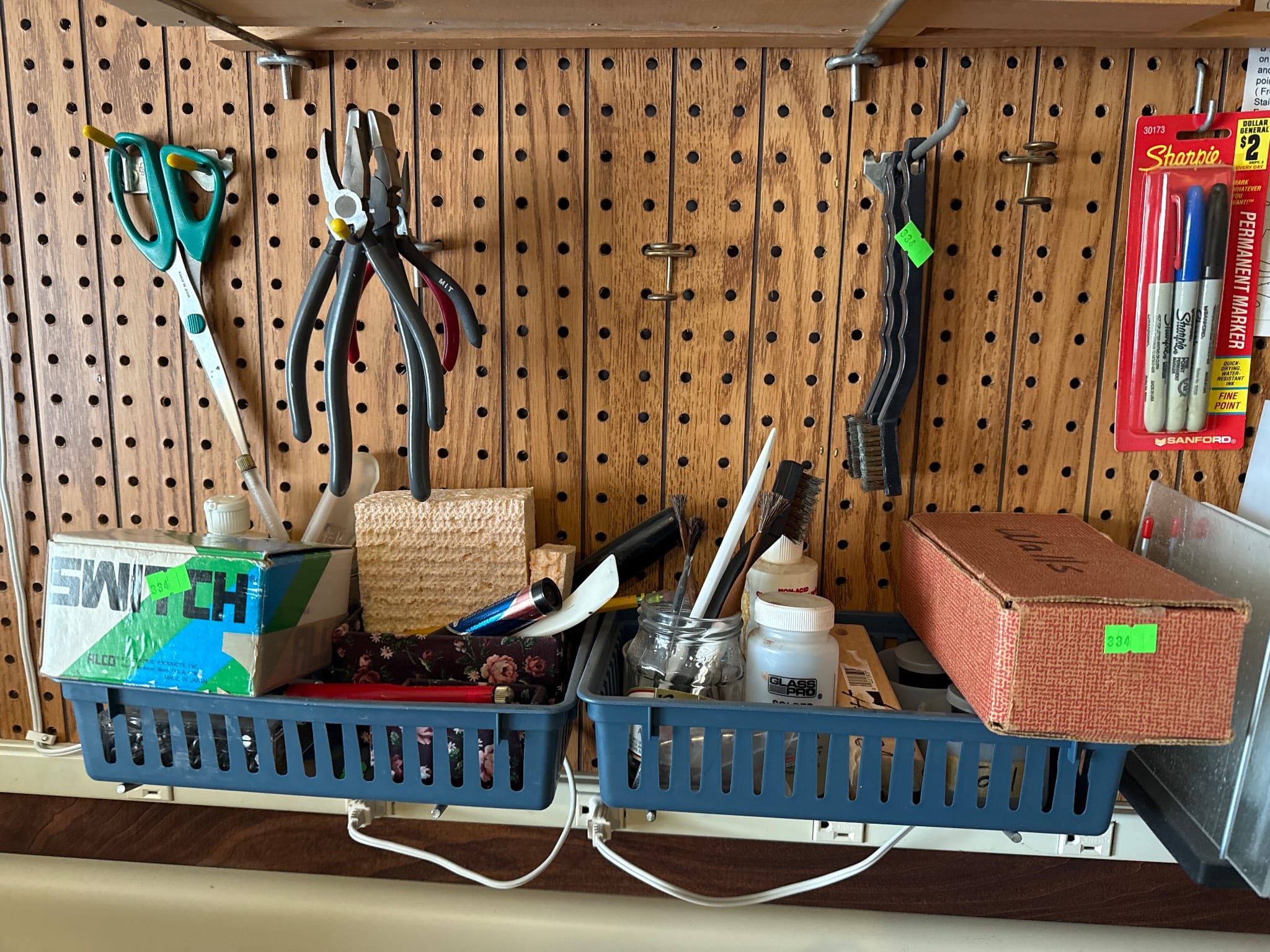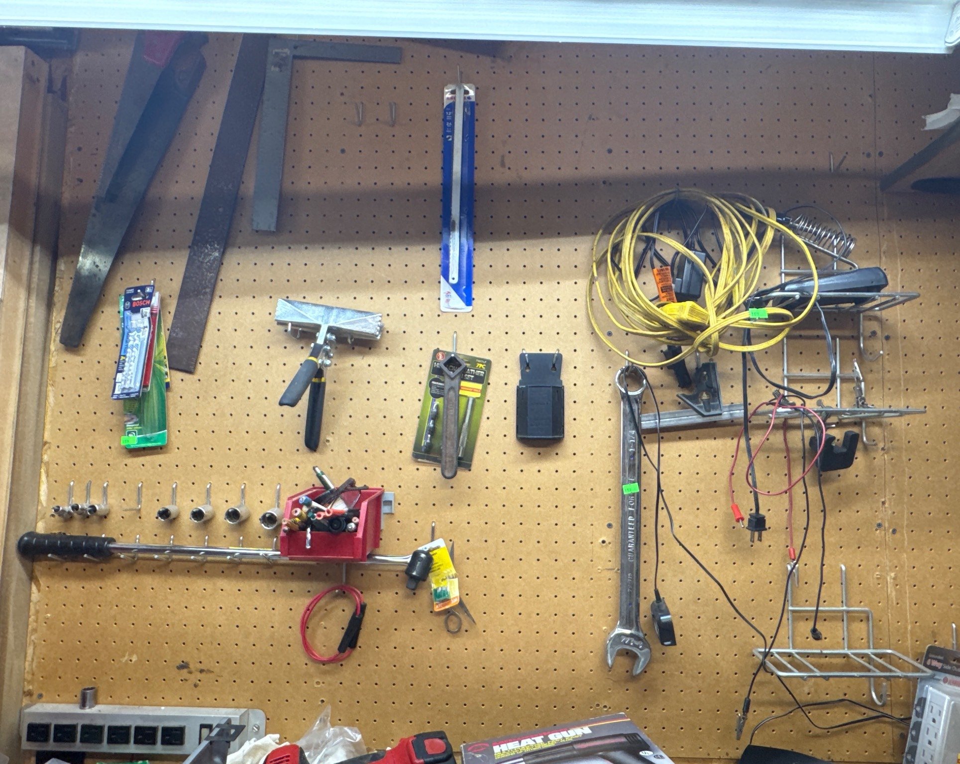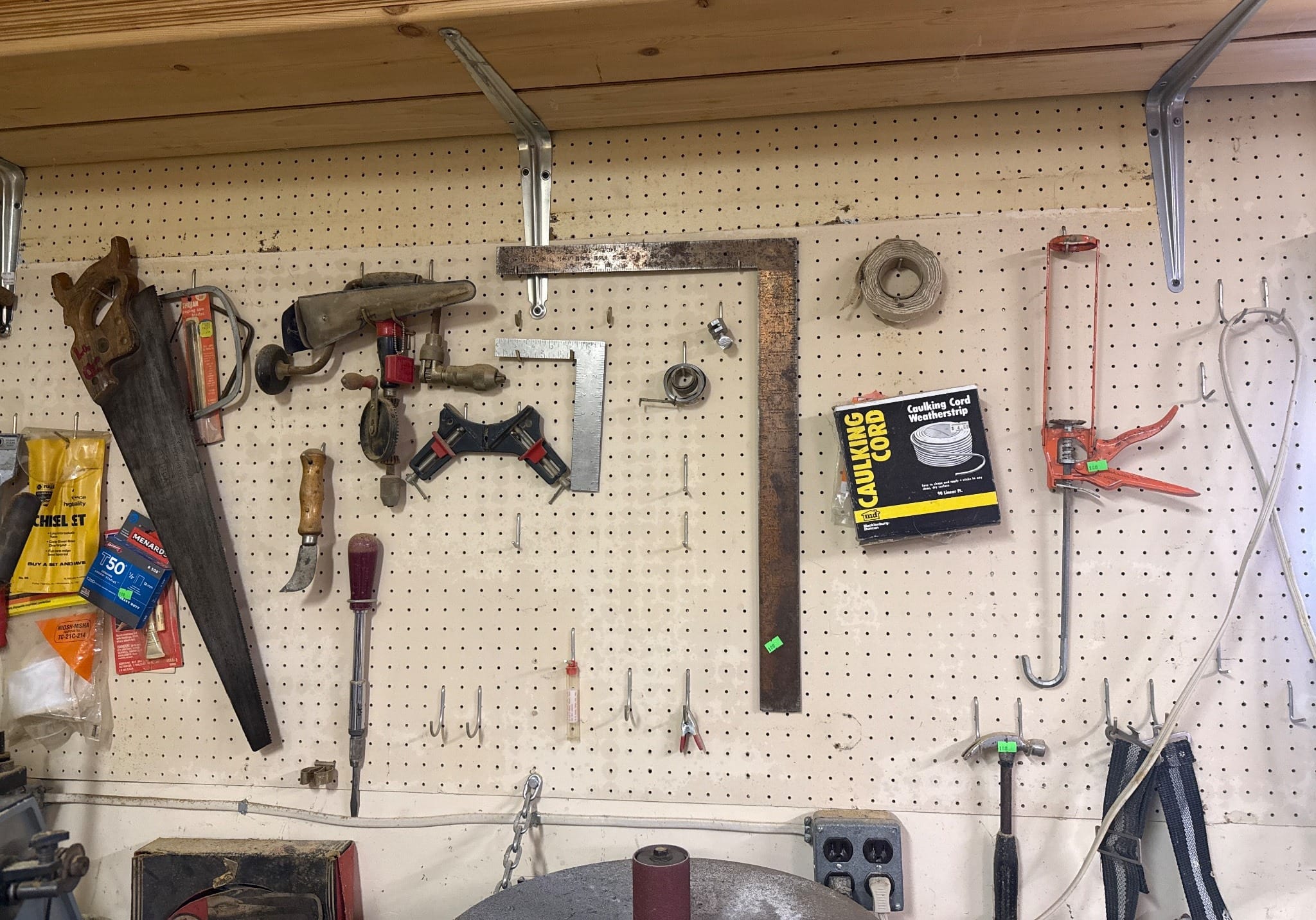 153 Workshop Wall-Mounted Tool Collection on Pegboard and Hand Tools Inc. Wrenches, Screwdrivers and Saw Blades