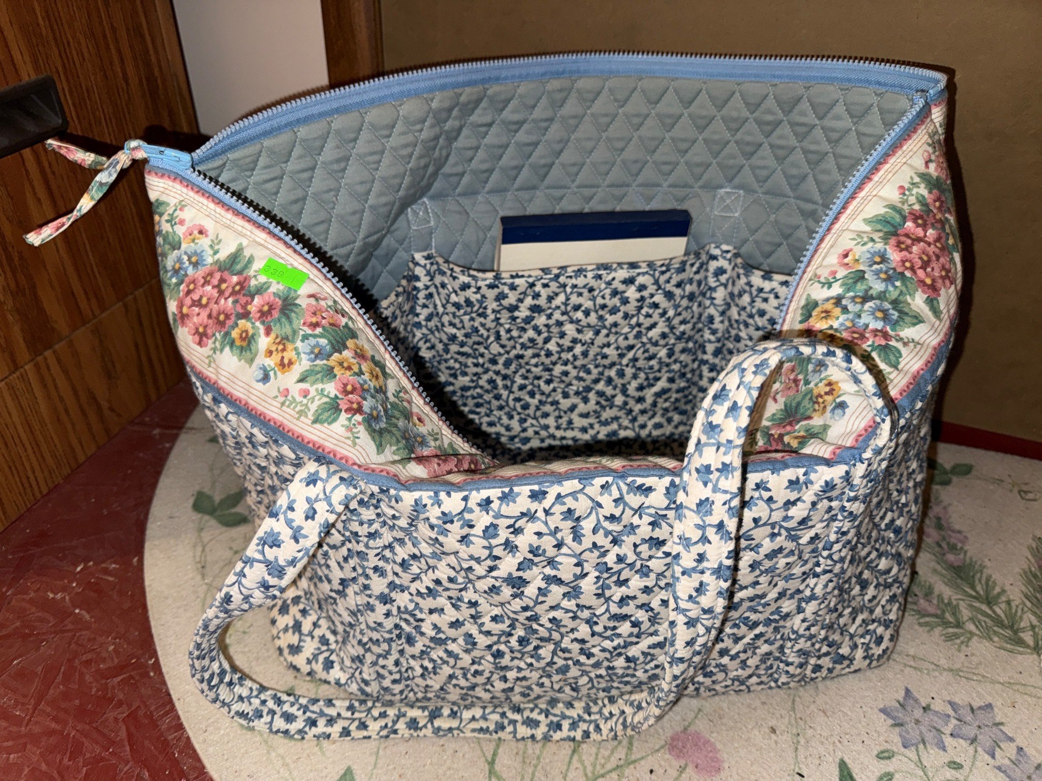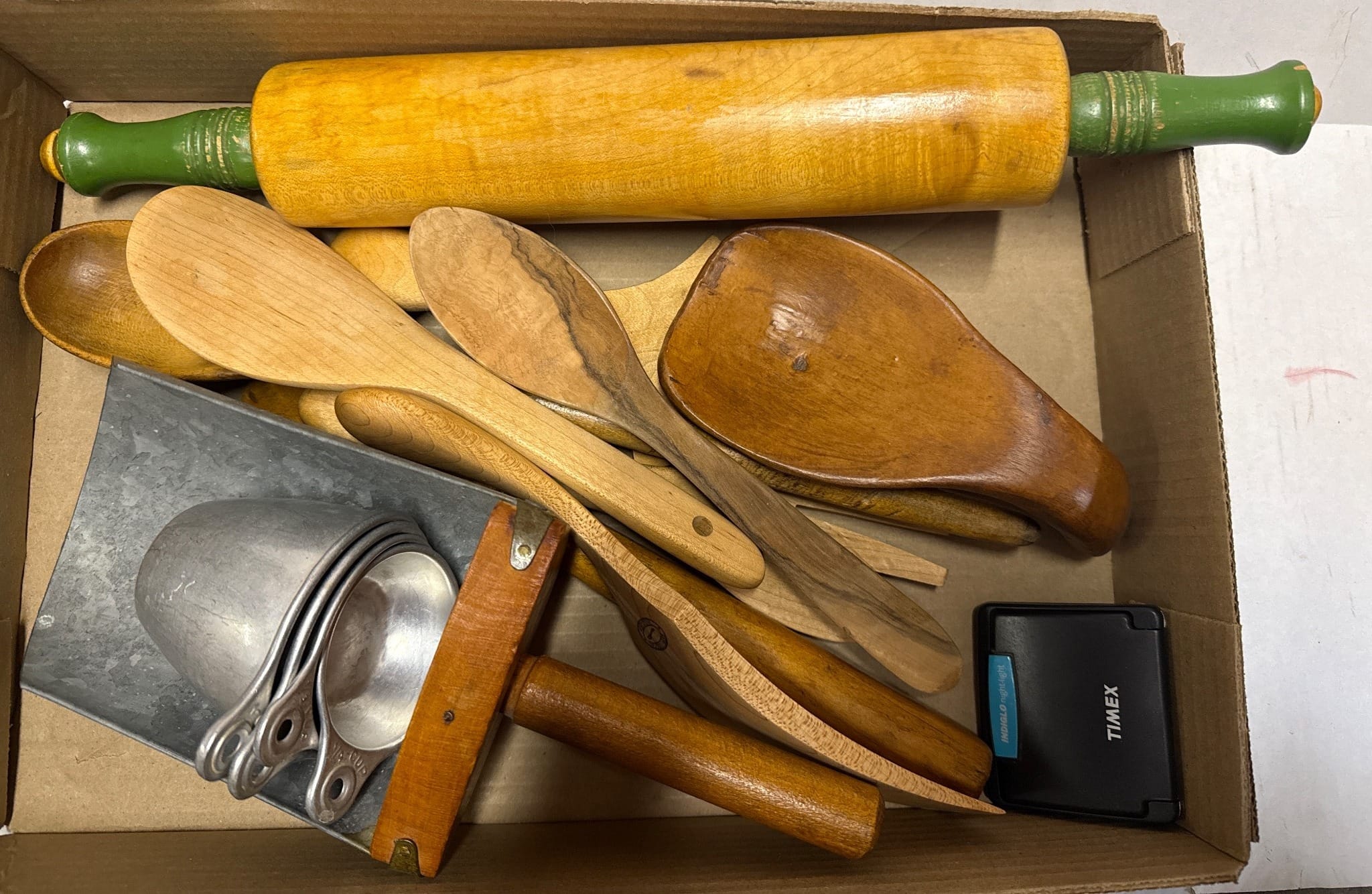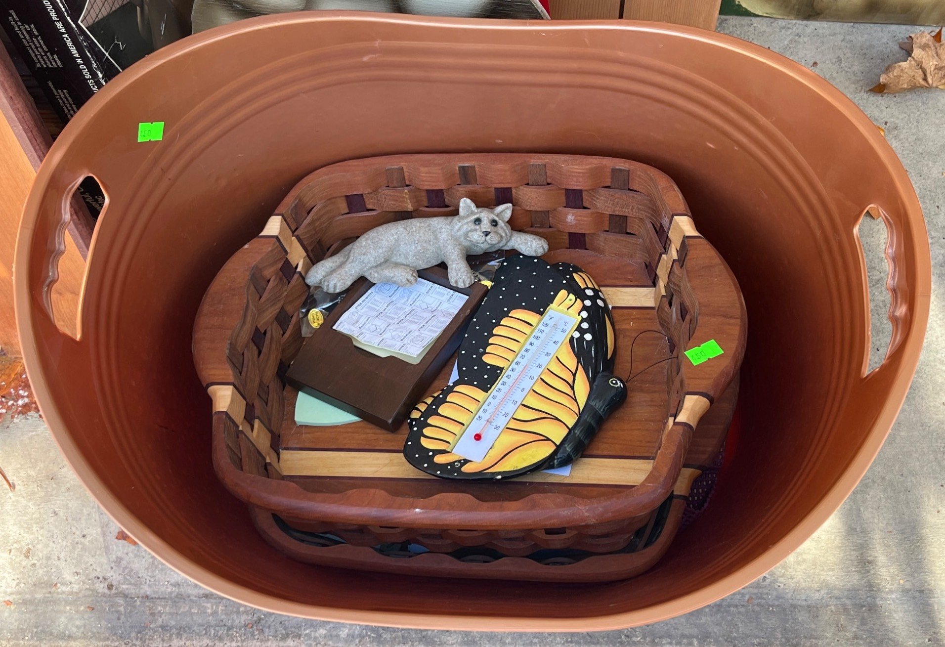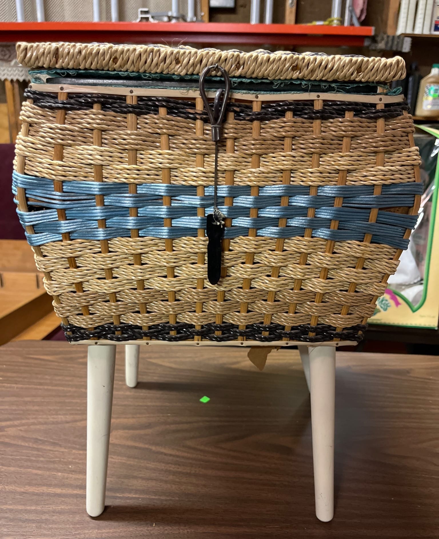 554 Rectangular Woven Basket with Handle and Contents, 19.5×9.5×15?