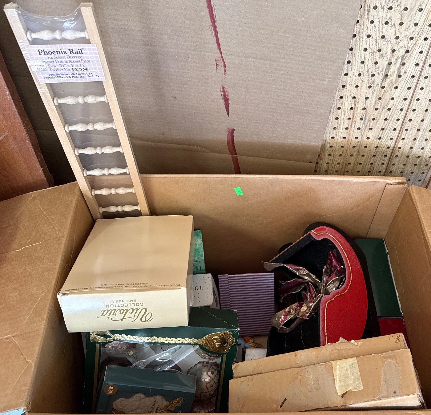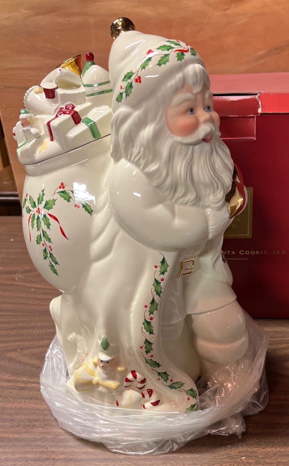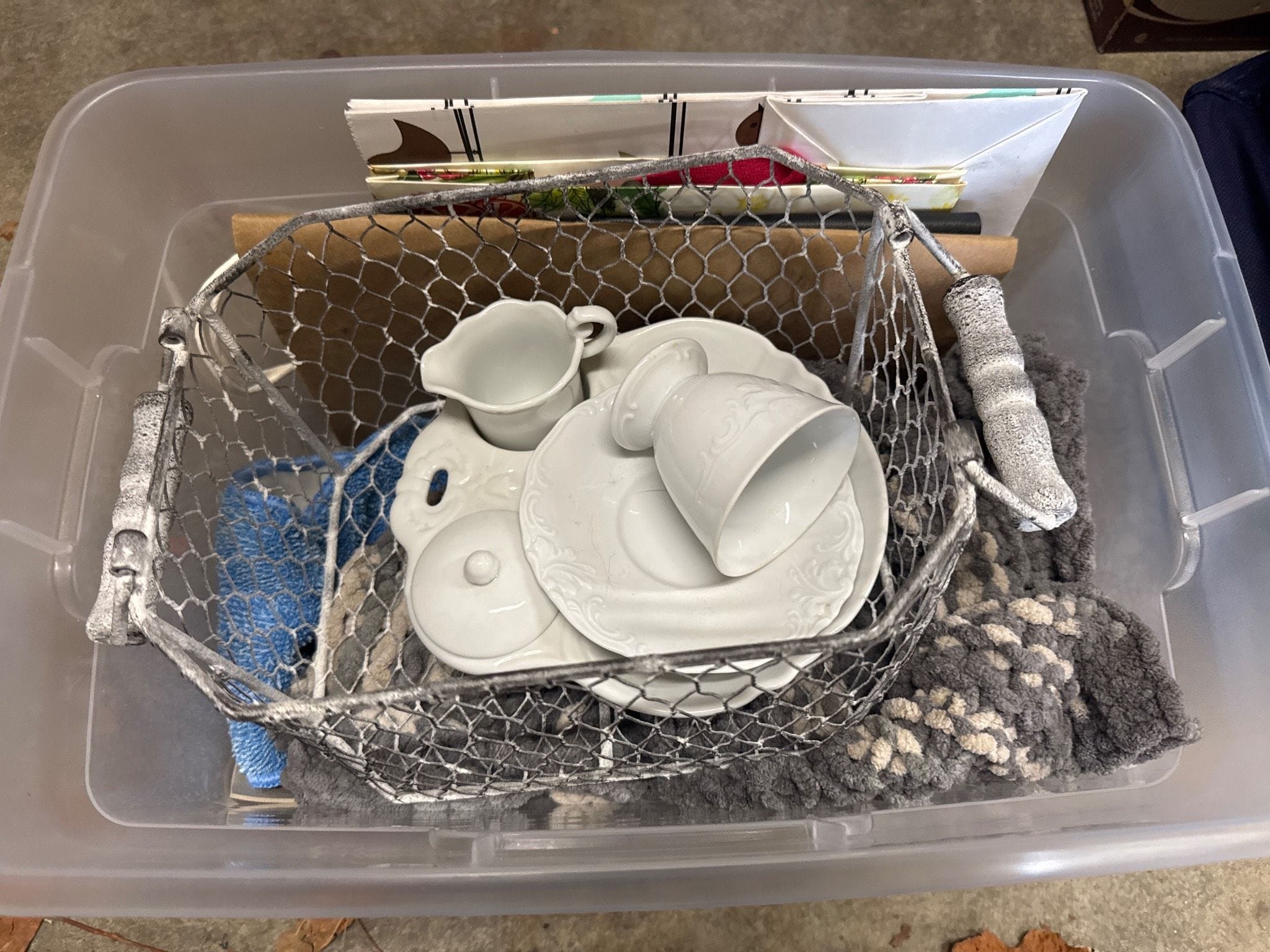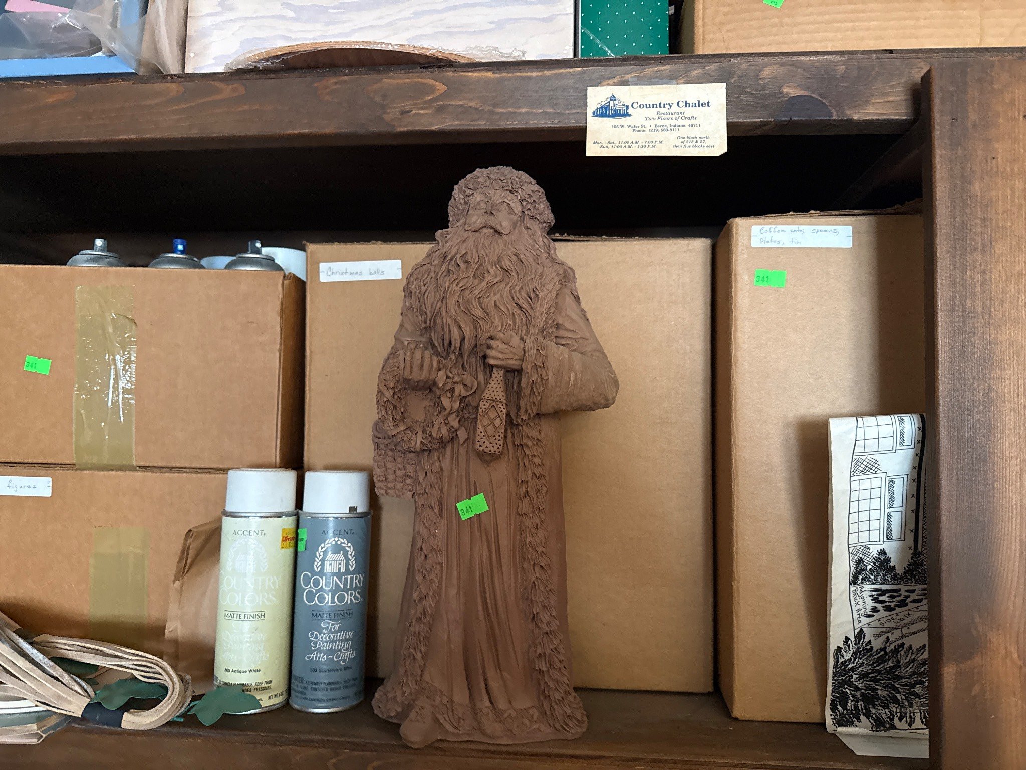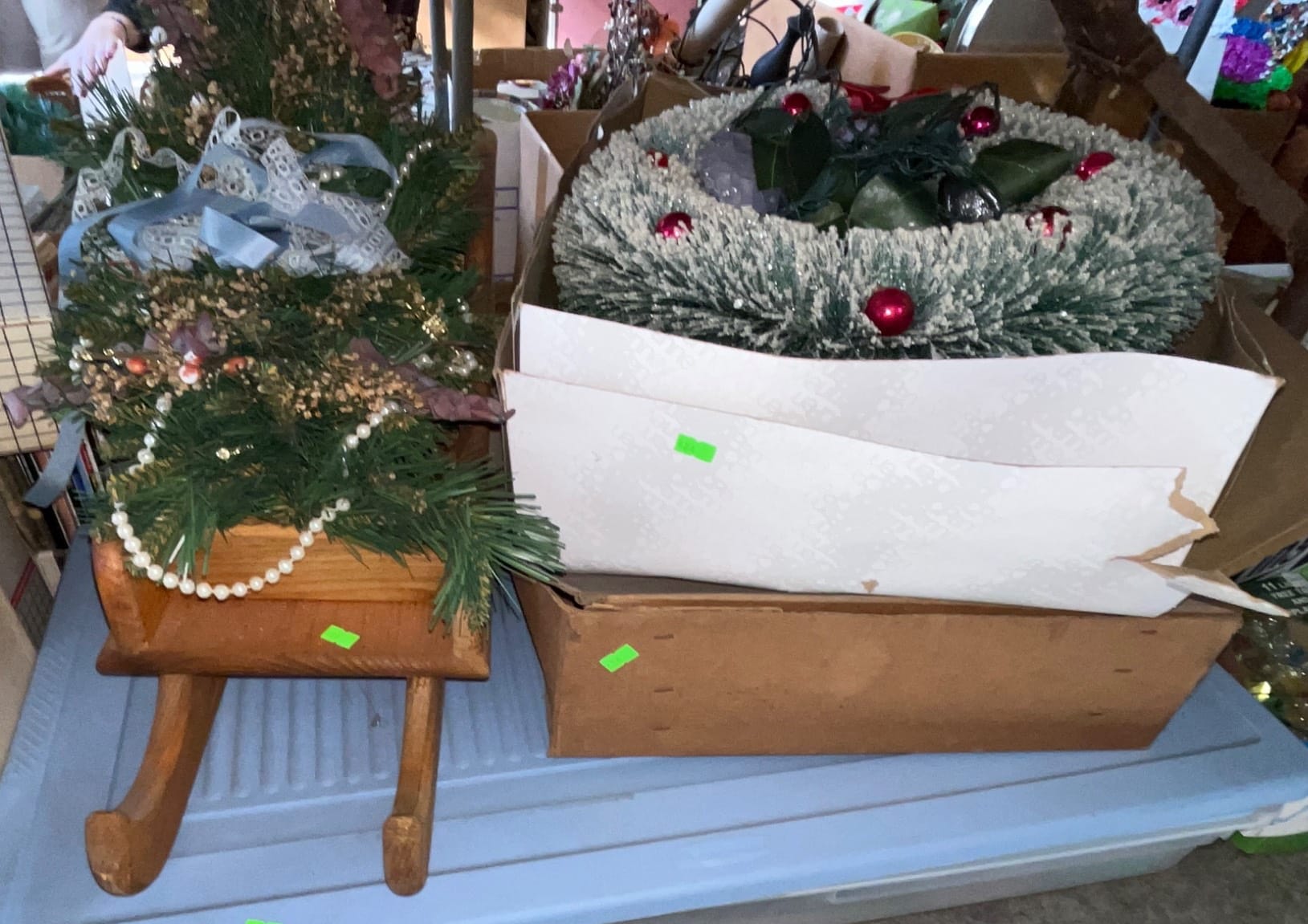 558 Metallic Bin with Holiday Figurines and Mugs