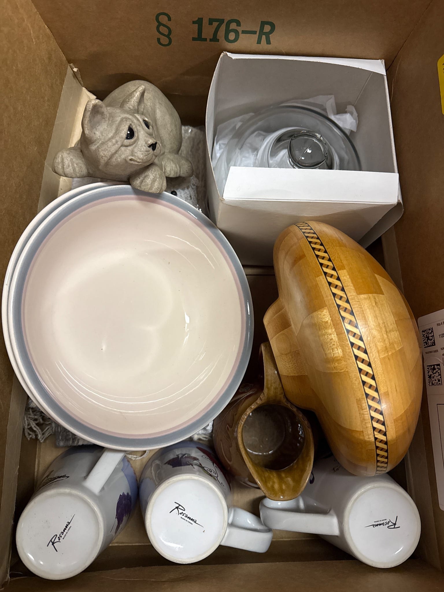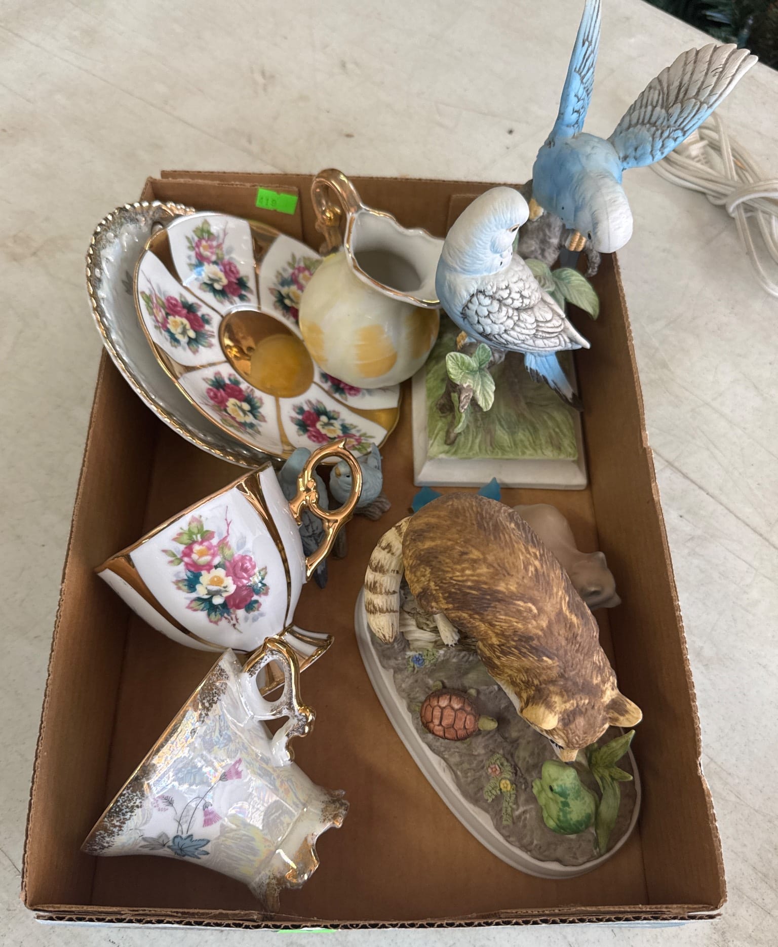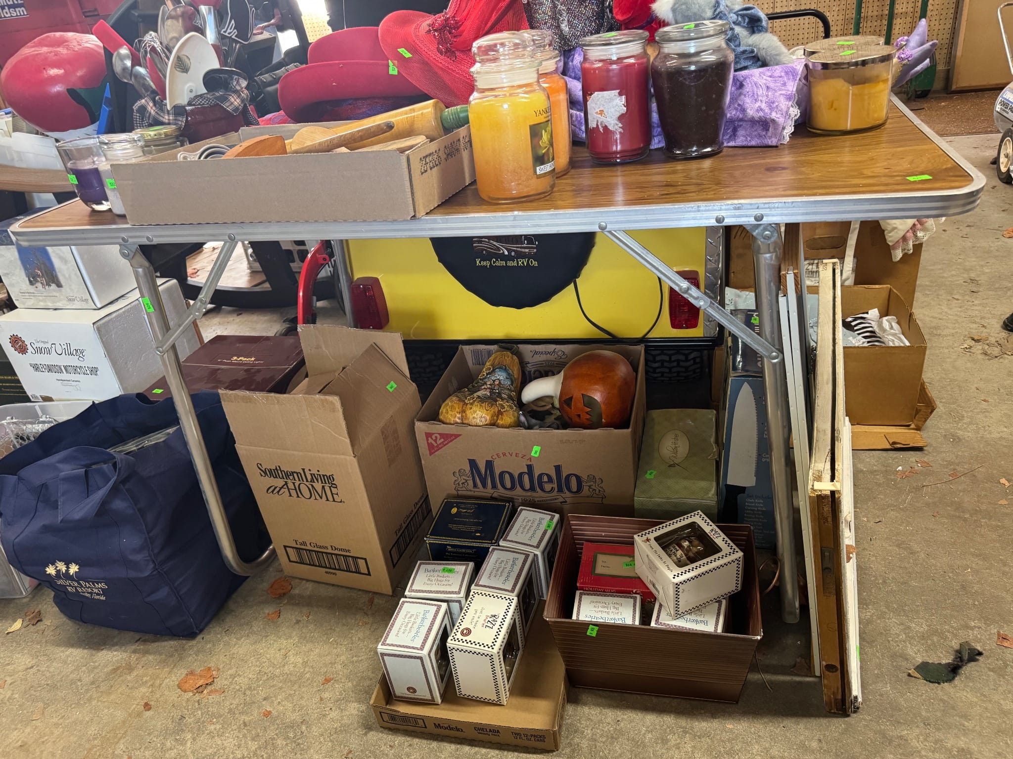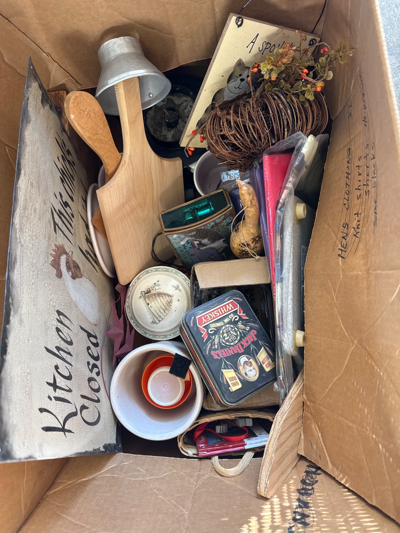 558 Metallic Bin with Holiday Figurines and Mugs