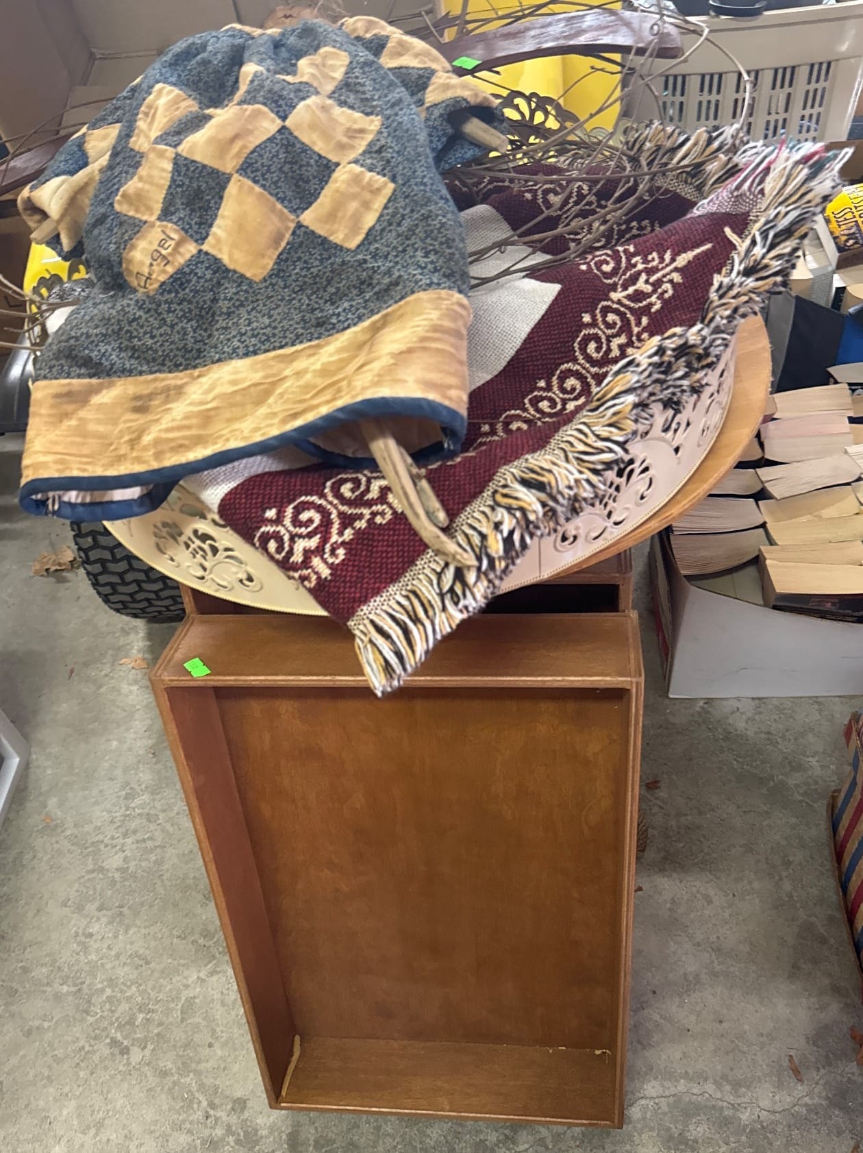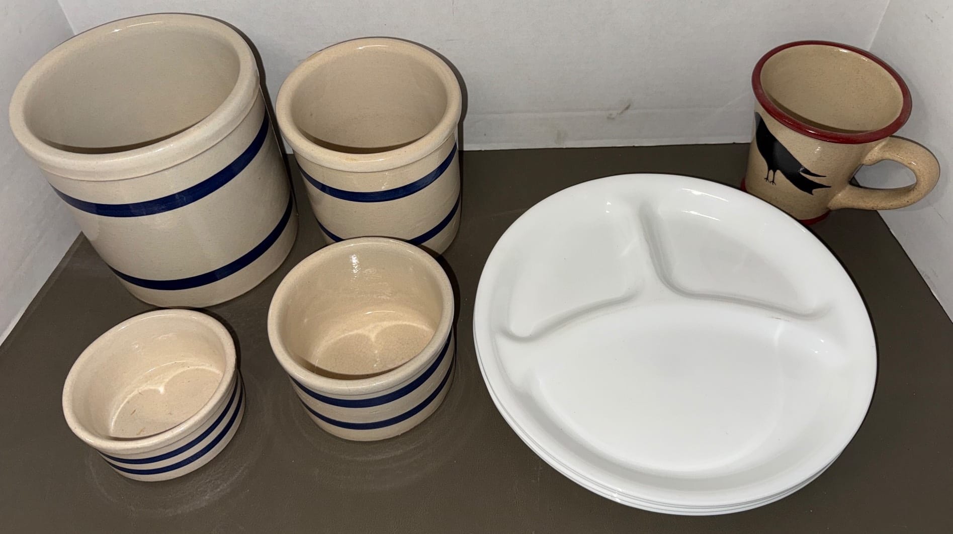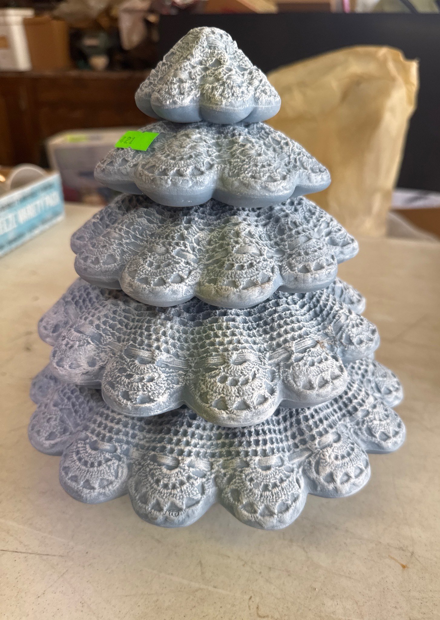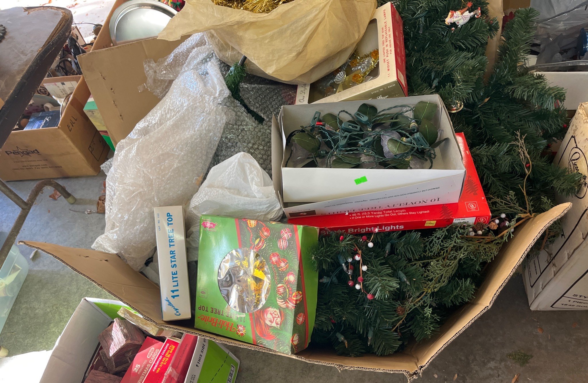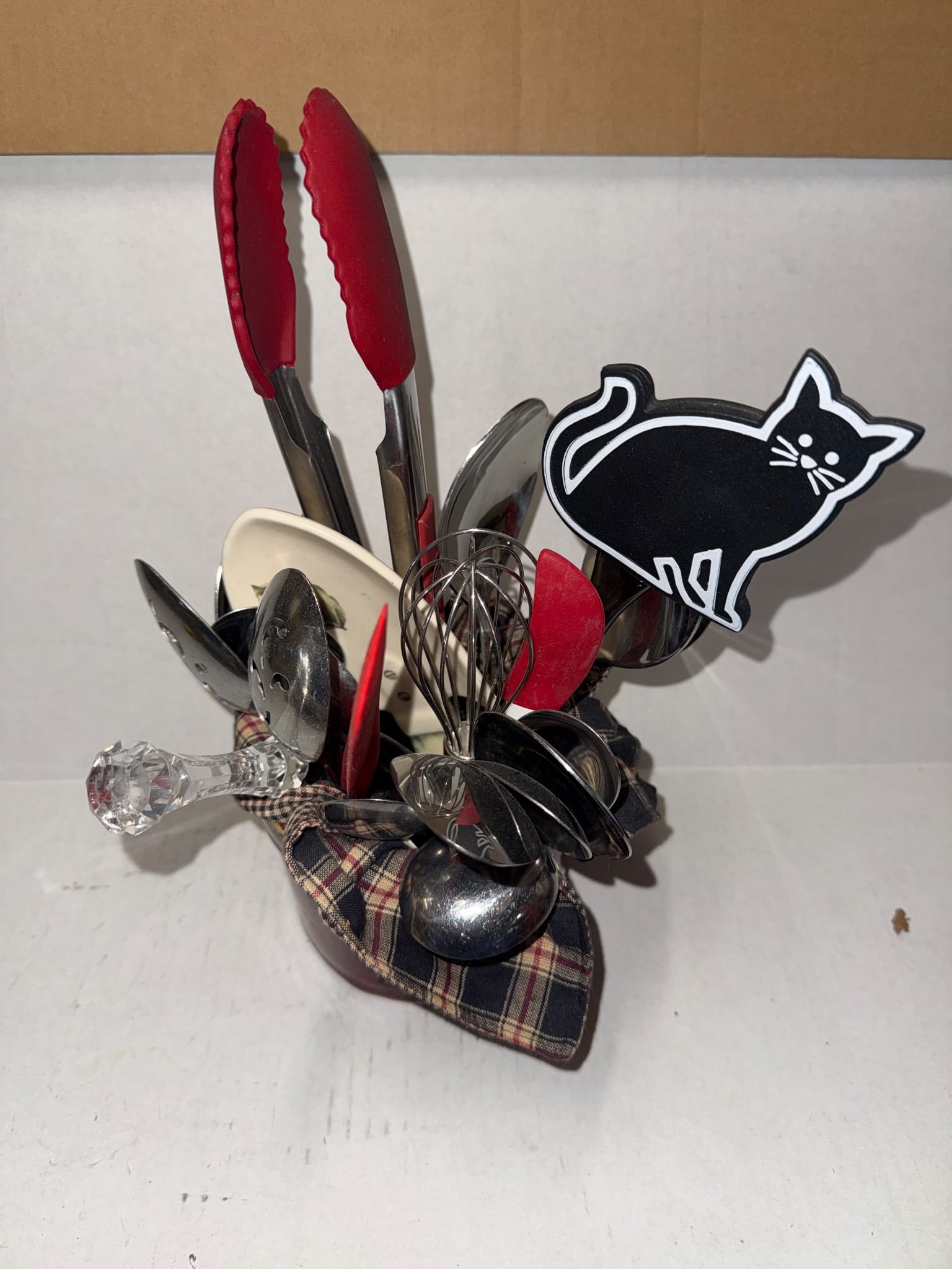 558 Metallic Bin with Holiday Figurines and Mugs
