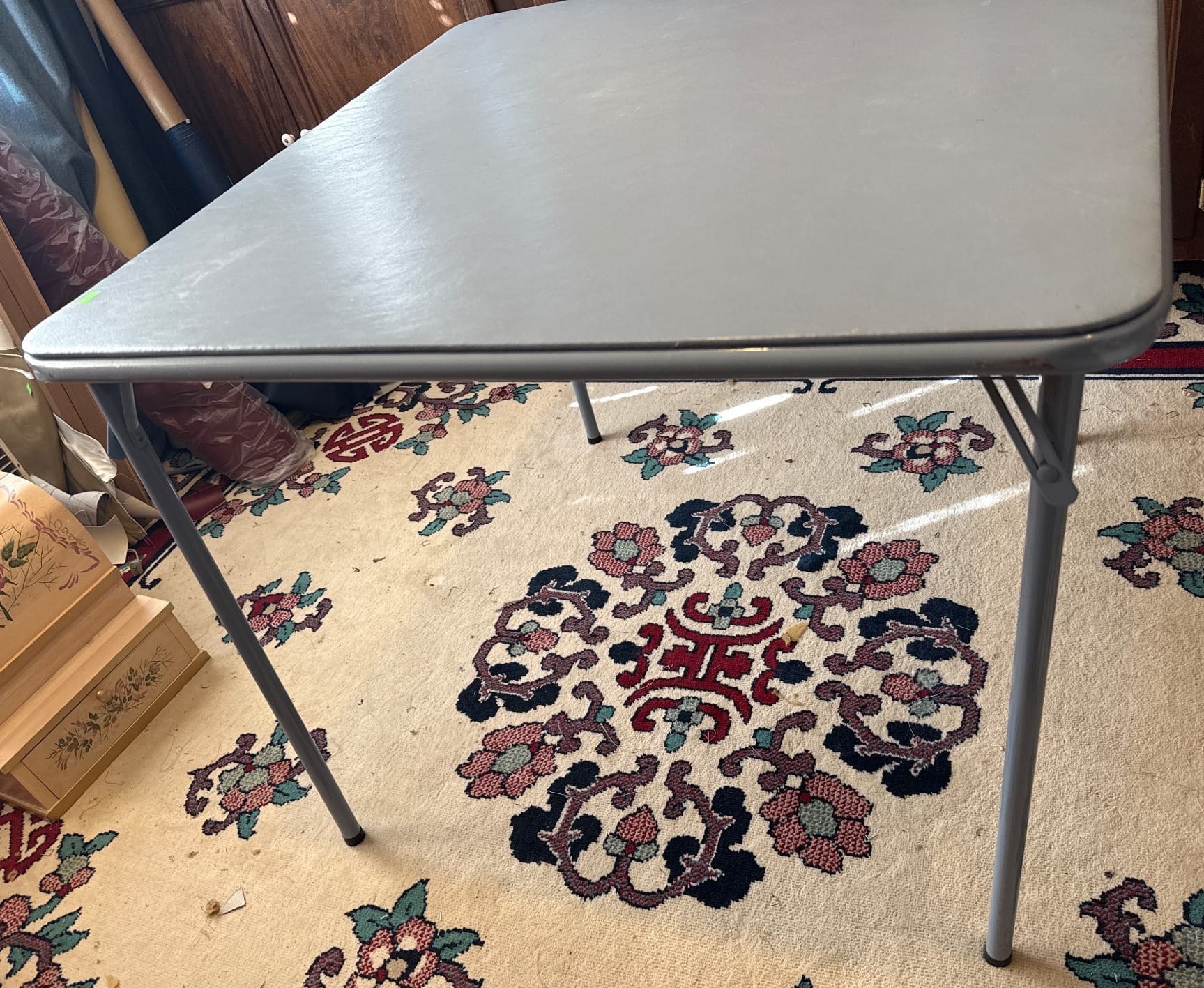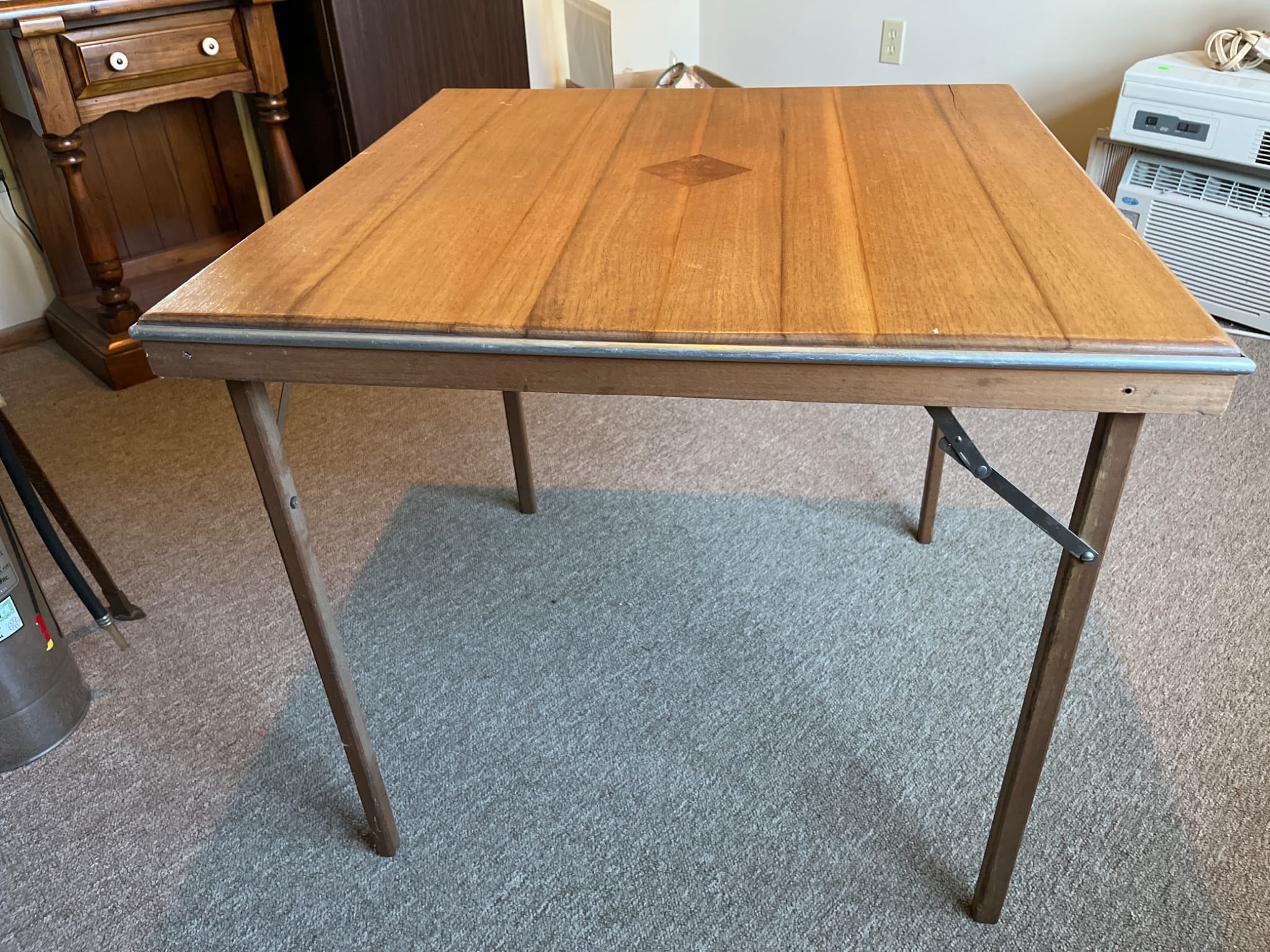 617 Folding Hardwood Table with Diamond Inlay Design, 28.5×28.5×25?