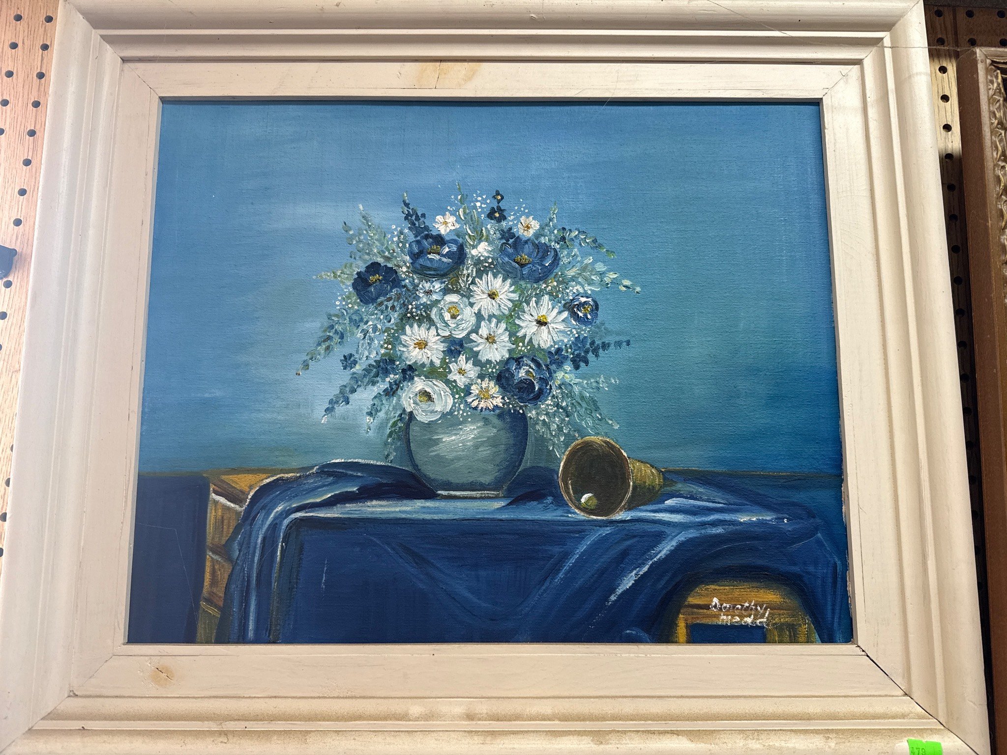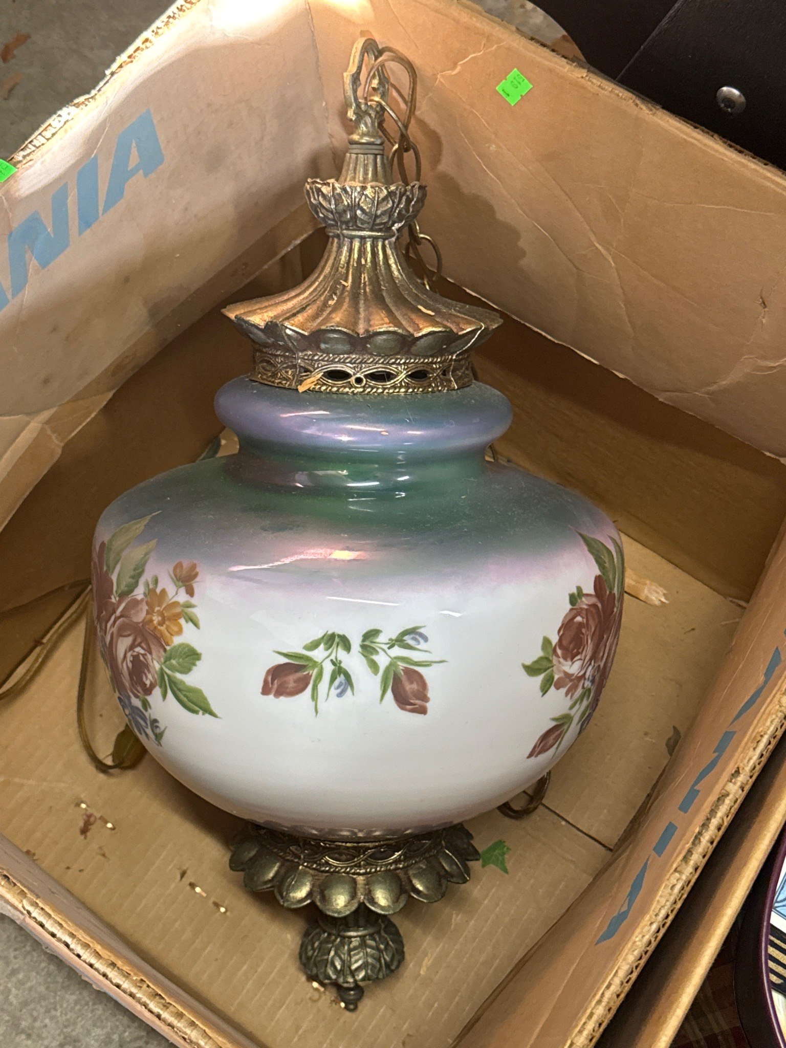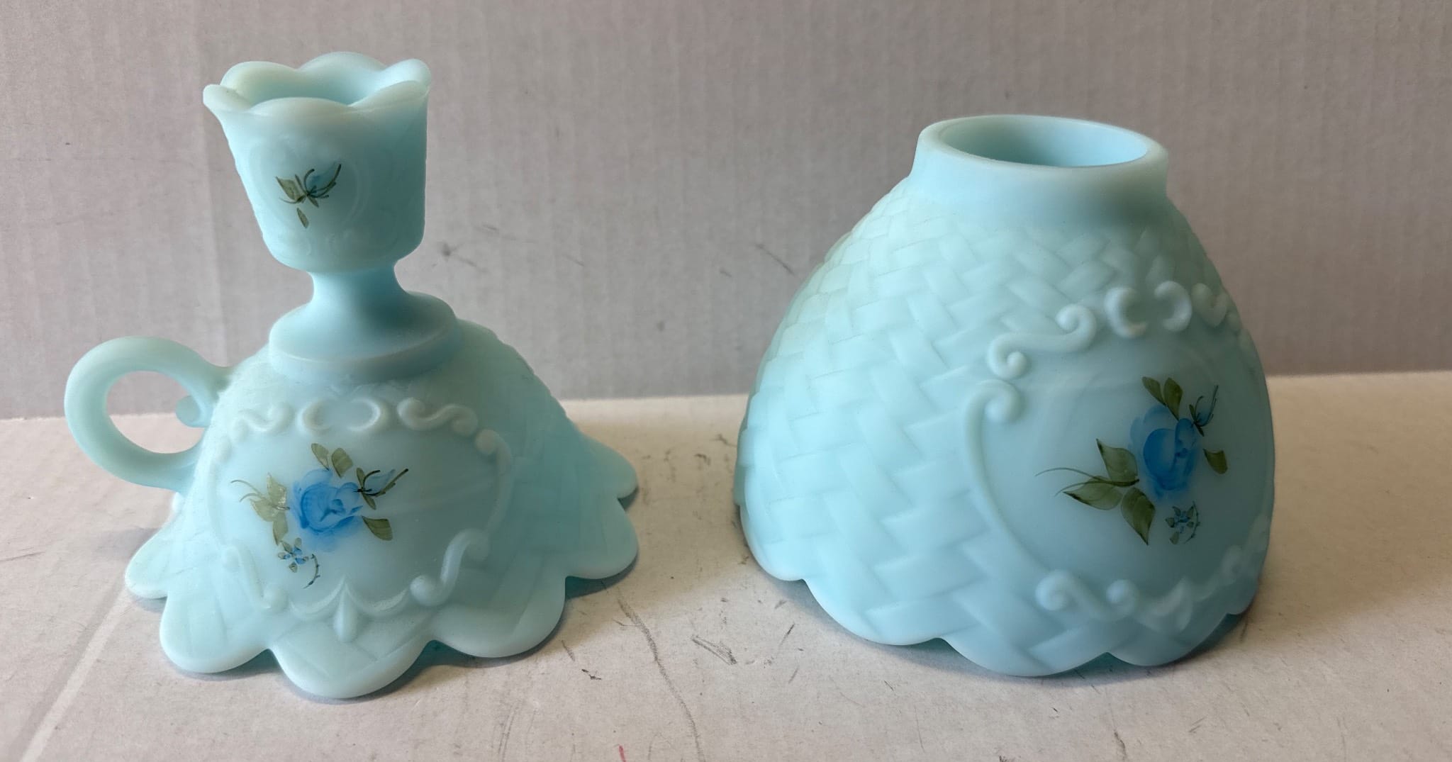 607 Painted Storage Chest with Floral Accents and Glass Ashtrays, 12x12x14?