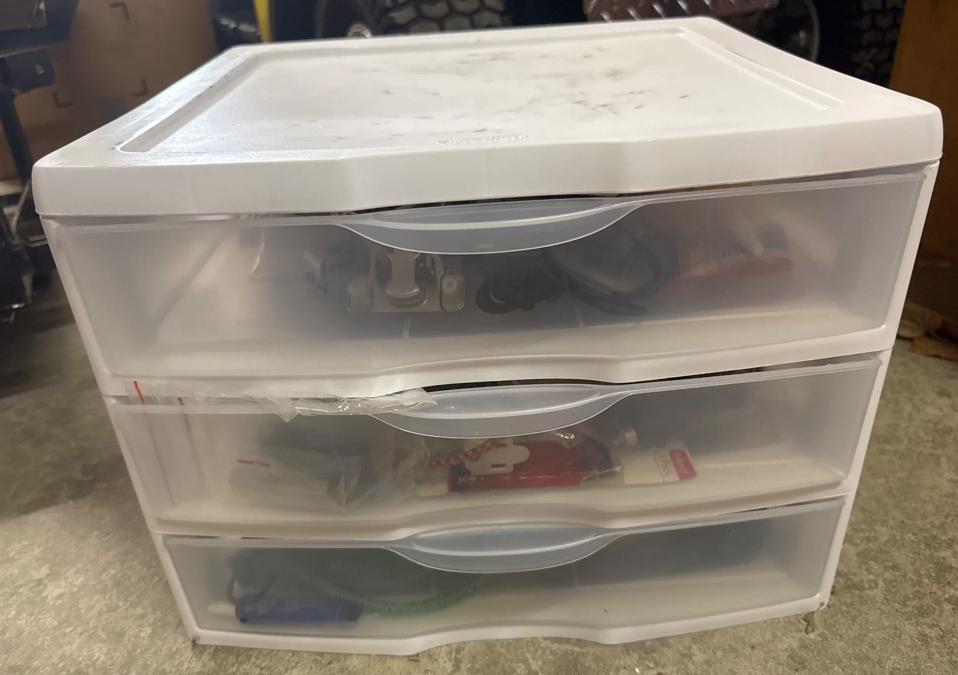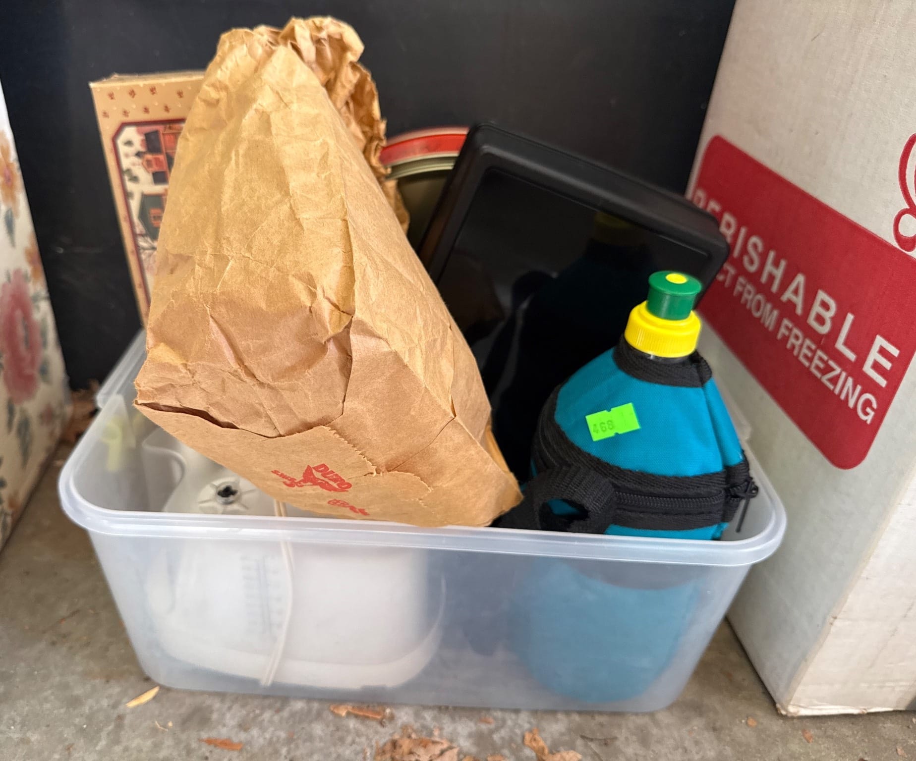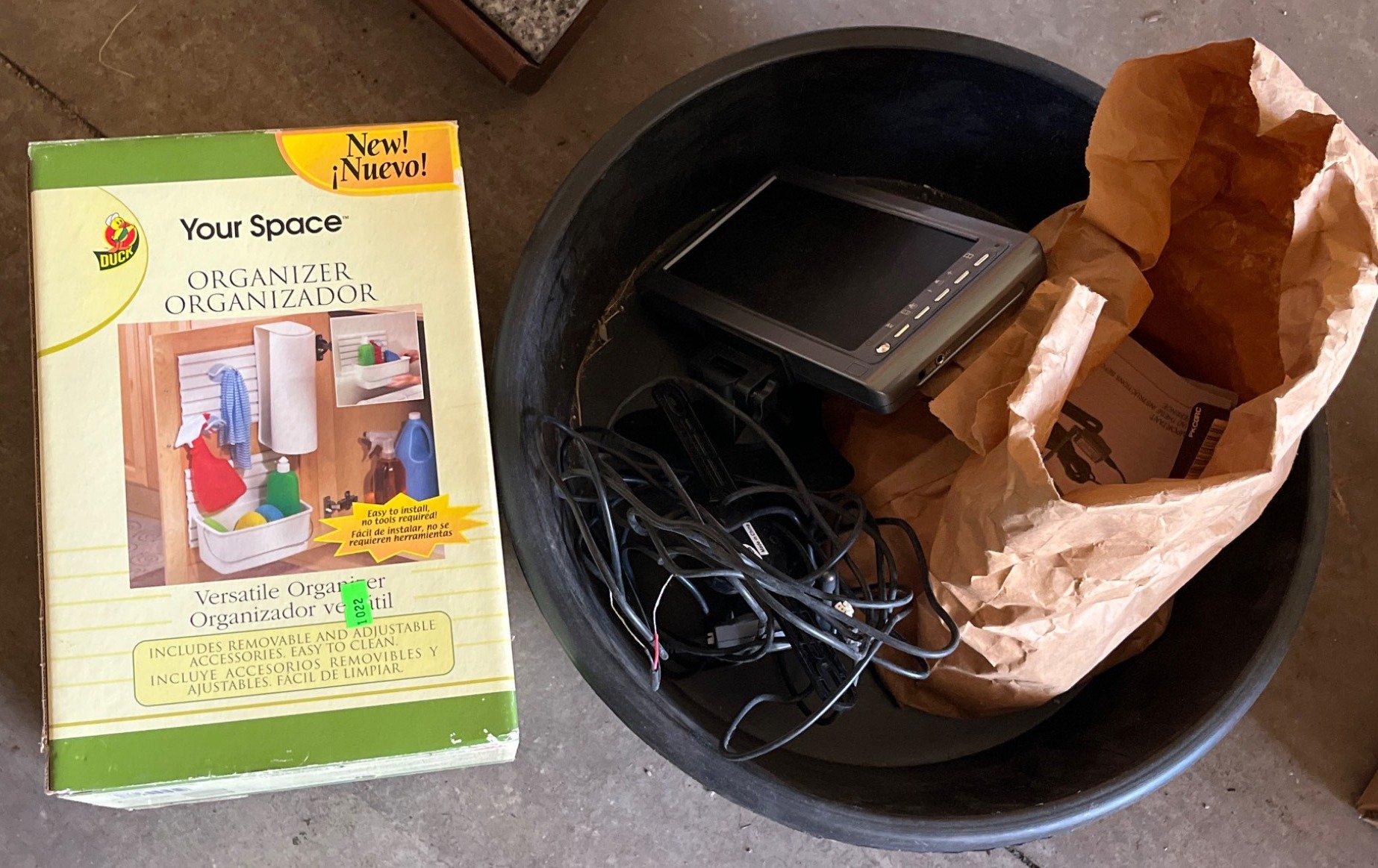 1022 Plastic Tub, Duck Brand Organizer, and Peak Wireless Back-Up Camera System
