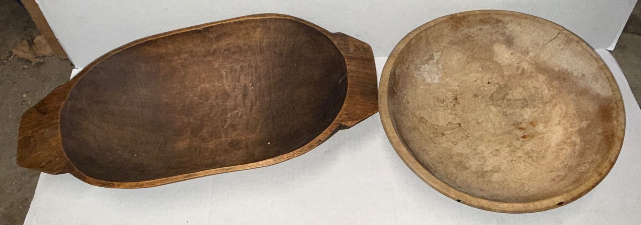 556 Hand-Carved Oval Bowl and Round Bowl Pair, 19.5×9.5×3.5?, 3×13?