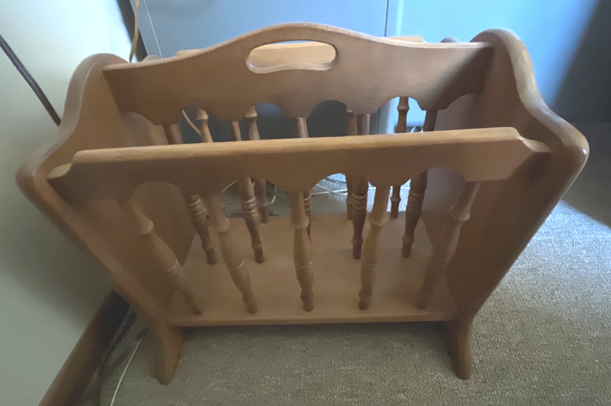 616 Carved Magazine Rack with Turned Spindle Supports, 16x12x15?