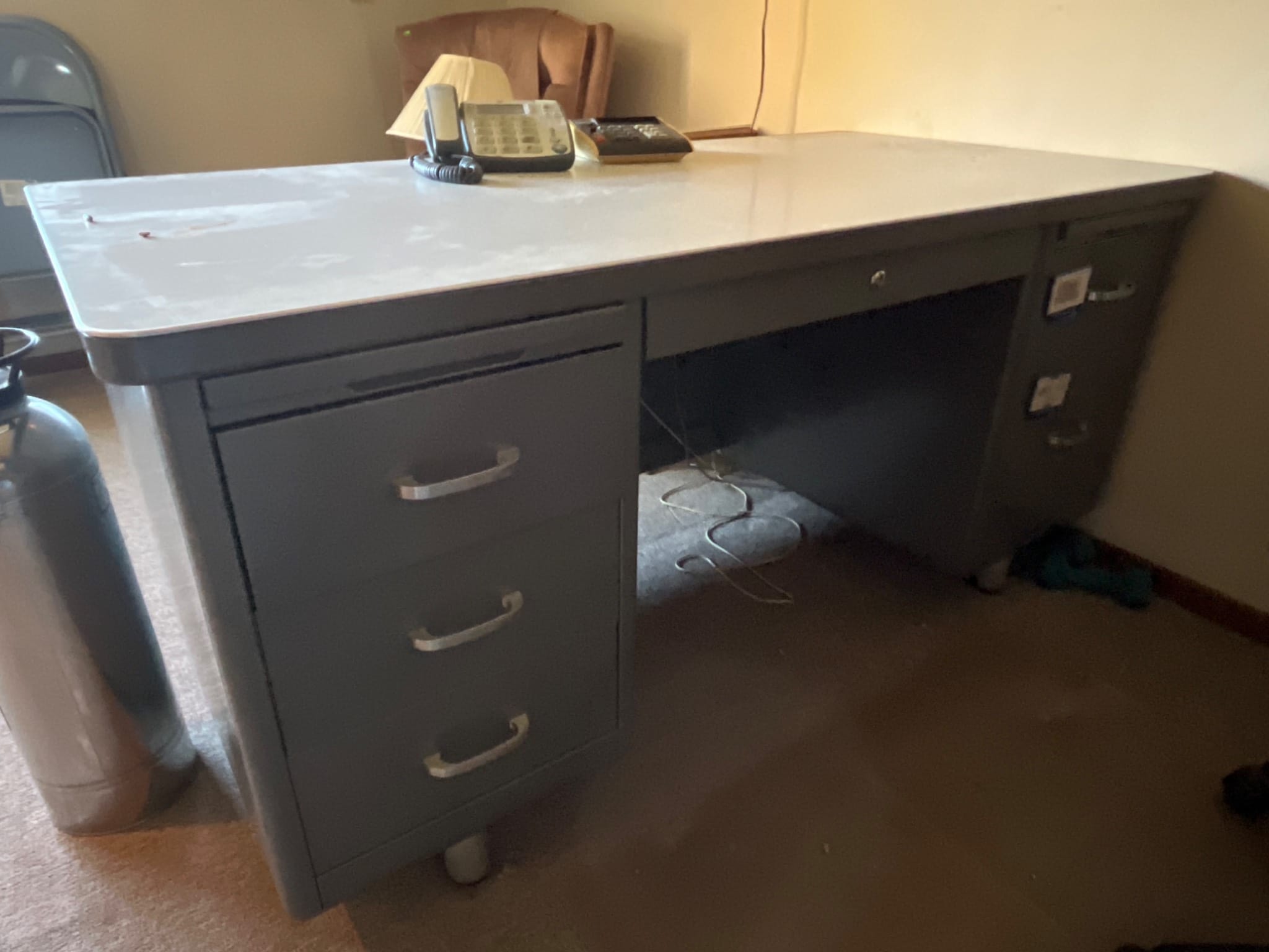 620 Metal Desk with Storage Drawers and Central Locking Drawer, 60x30x29?