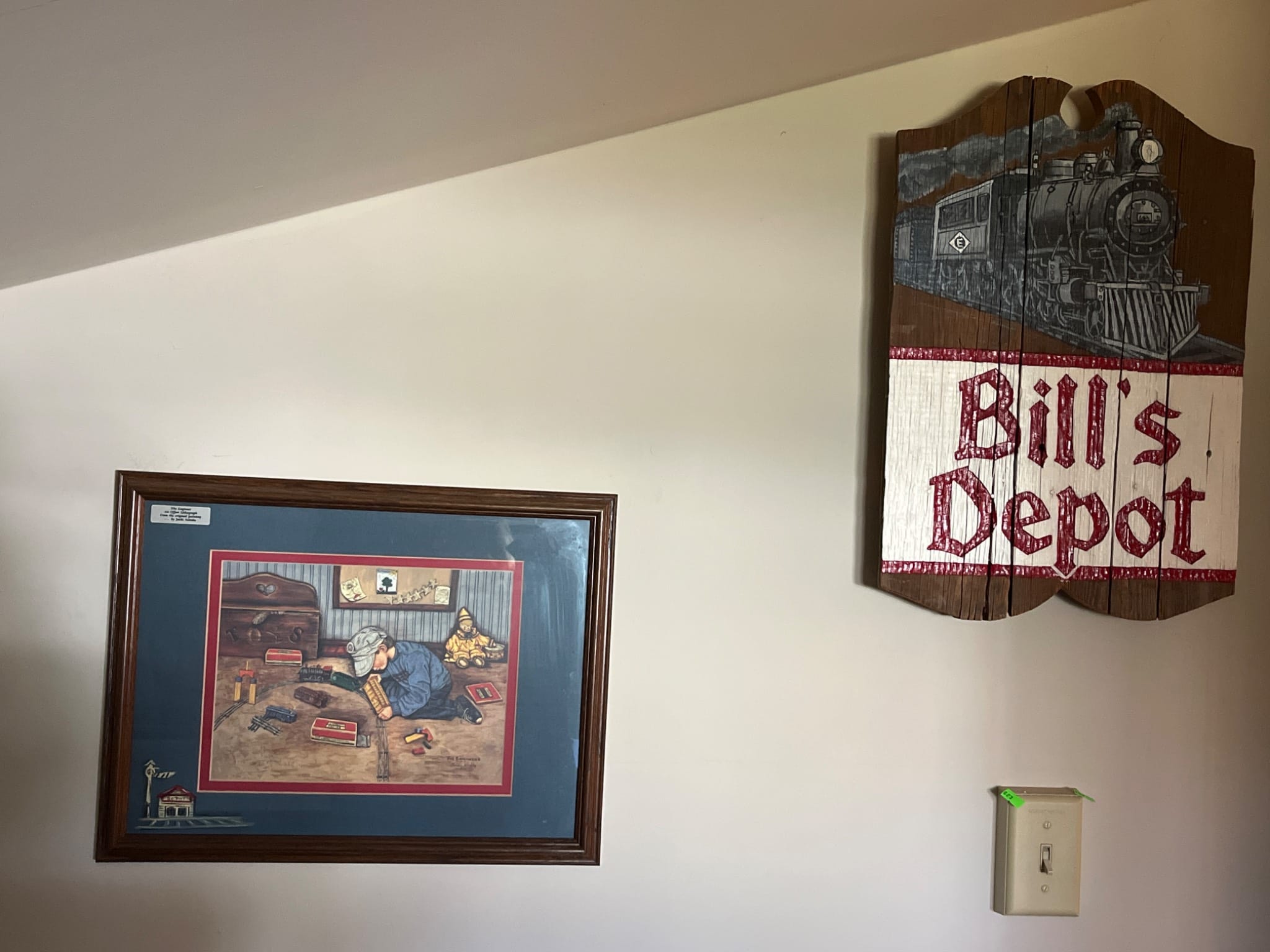 623 Framed Print ‘The Engineer’ by Jacci Neitzke and Painted ‘Bill’s Depot’ Wooden Sign