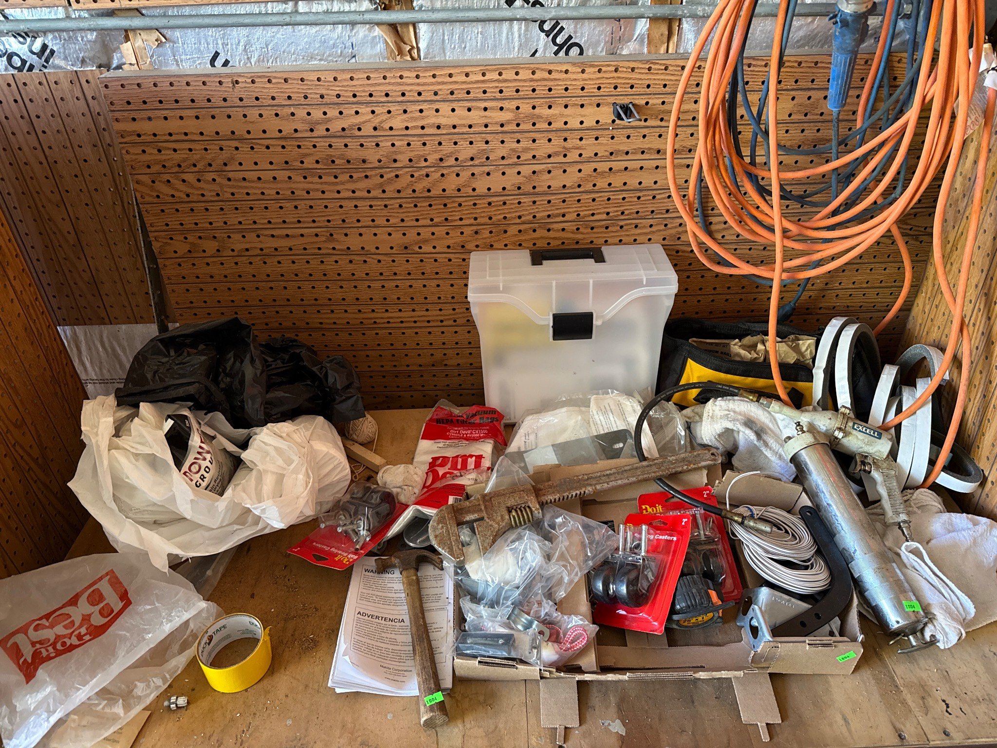 1004 Tools and Hardware Items Inc. Grease Gun, Wrench, Caster wheel and Hardware