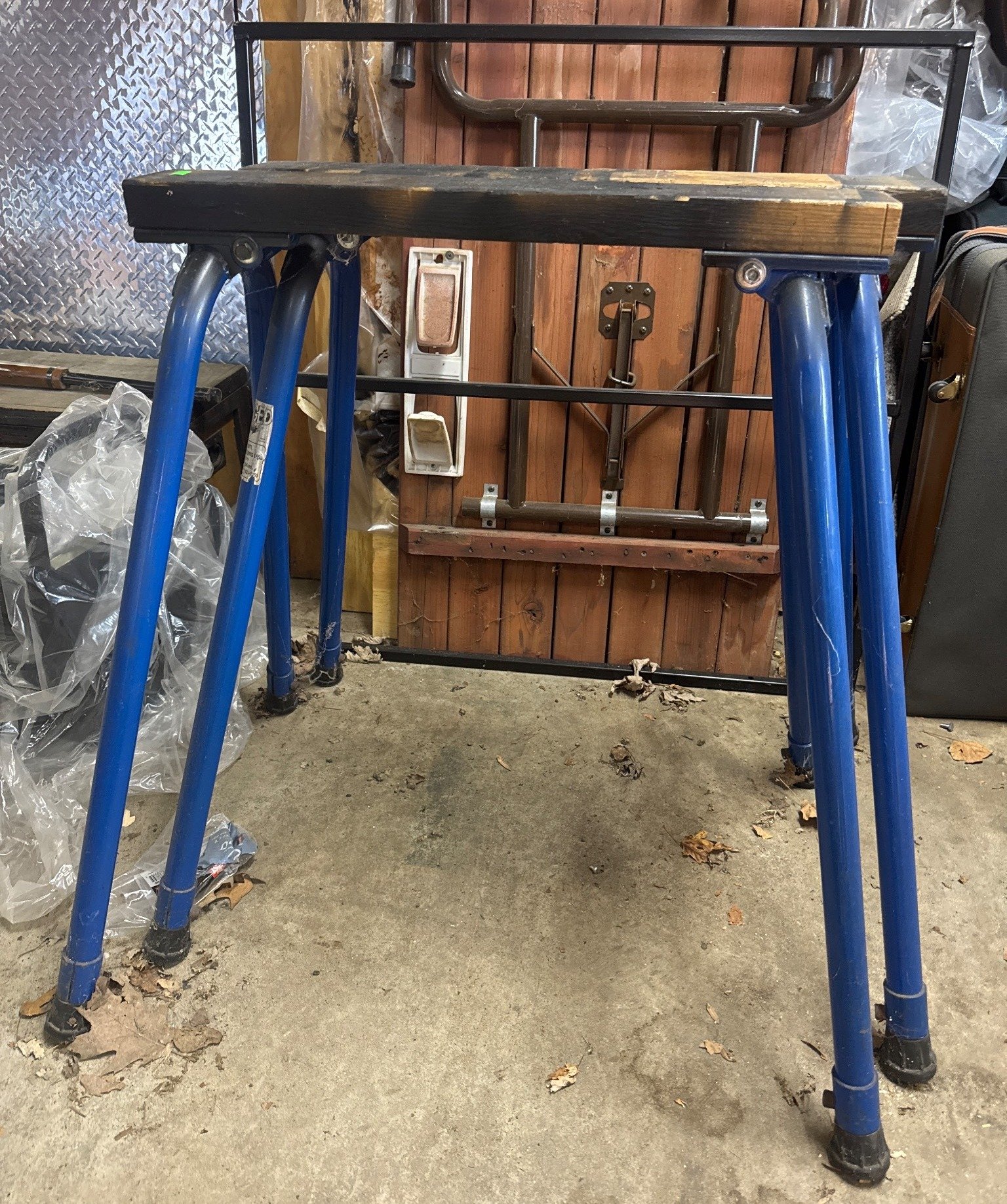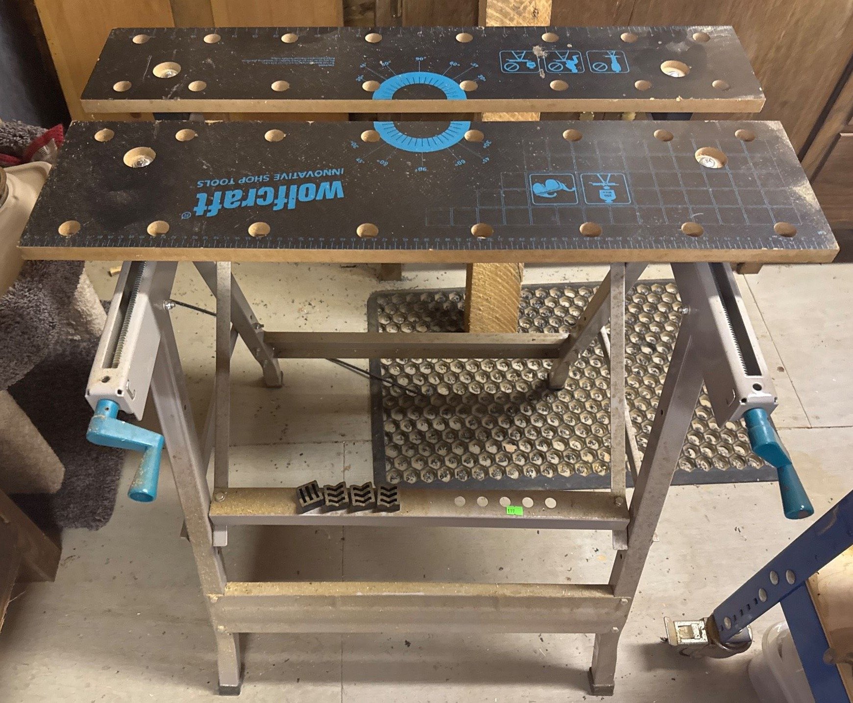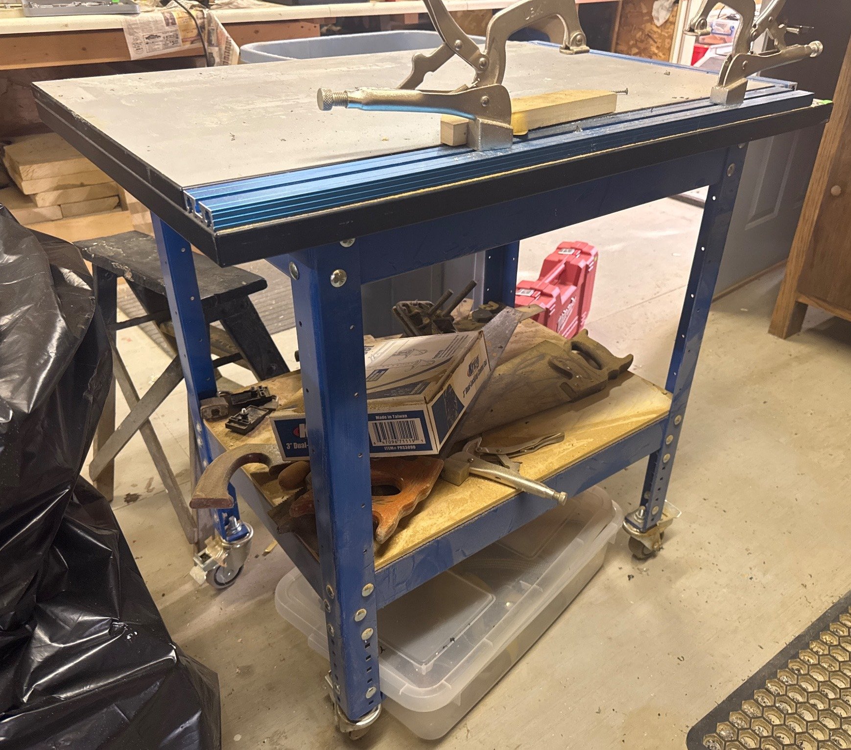 123 Metal Workbench with Blue Trim, Clamping System, and Lower Shelf