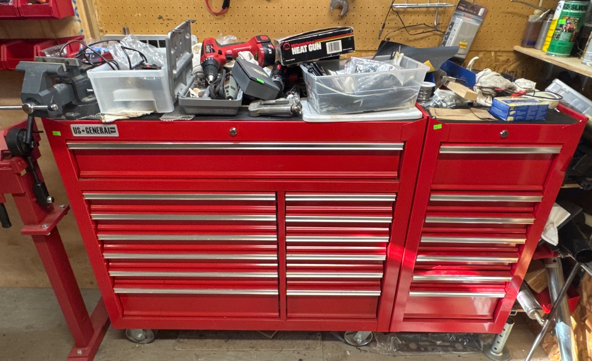 152 US General Pro 2-Section Rolling Tool Chest with Drawers With Contents, 42x18x39?