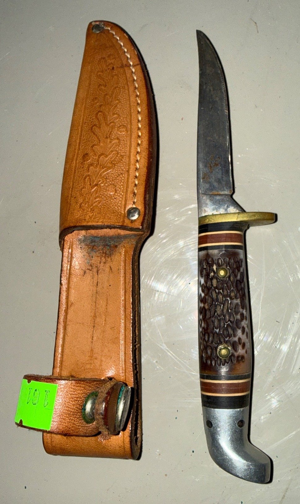 161 Western U.S.A. Fixed-Blade Hunting Knife with Leather Sheath