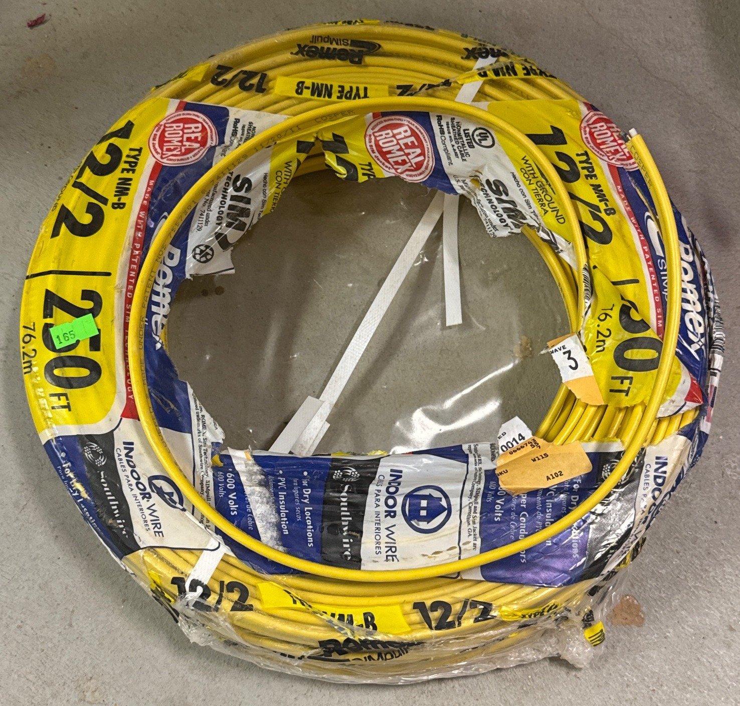 165 Partial 250-Ft Spool of Romex 12/2 Type NM-B Wire