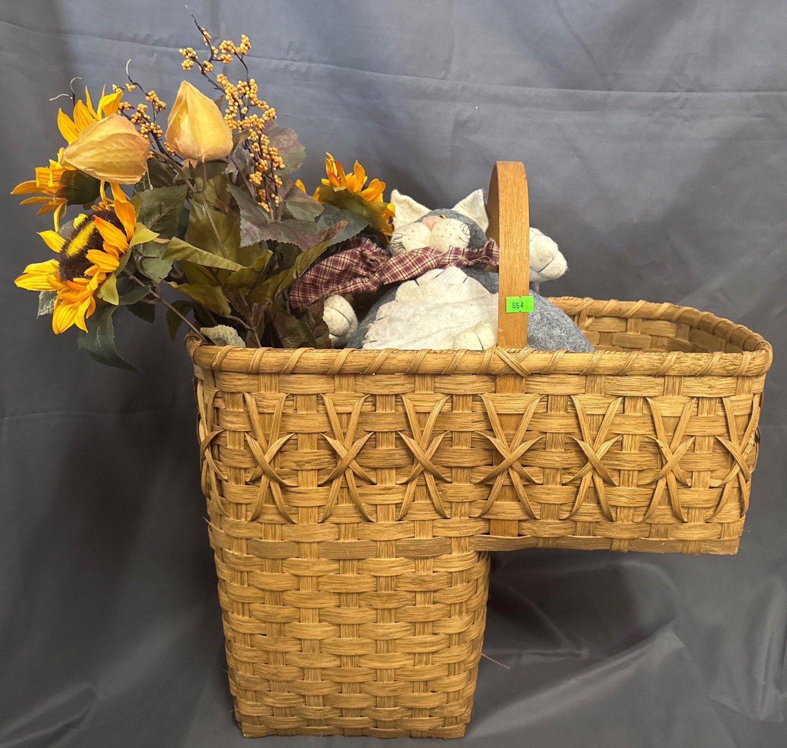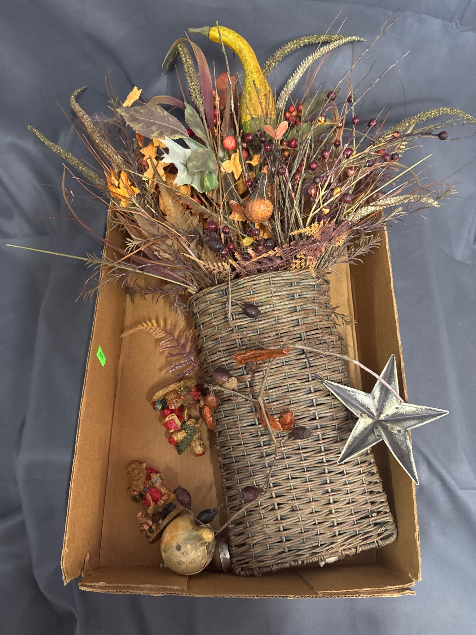 555 Handcrafted Basket With Faux Floral Arrangement and Holiday Figurines