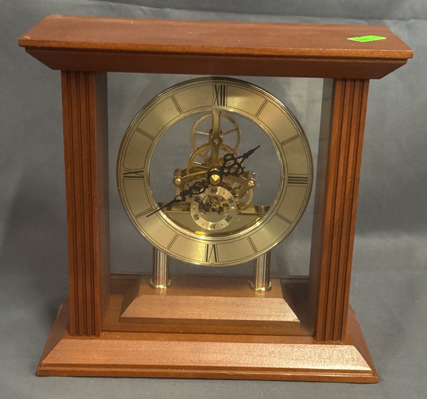 561 Glass-Paneled Skeleton Mantel Clock with Roman Numeral Dial, 8.5x4x8.5?