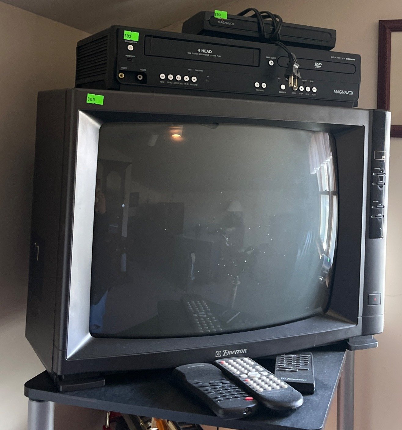 603 Emerson CRT Television With Magnavox DVD/VHS Player and Remotes