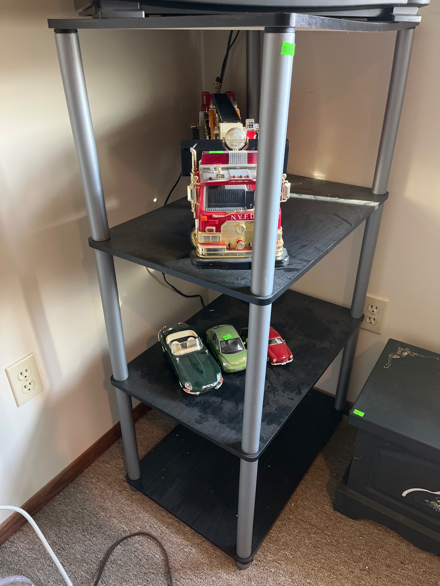 606 Black Plastic and Wood Shelving Unit, 4 Tiers, (Contents Not Included) 16×23.5×43