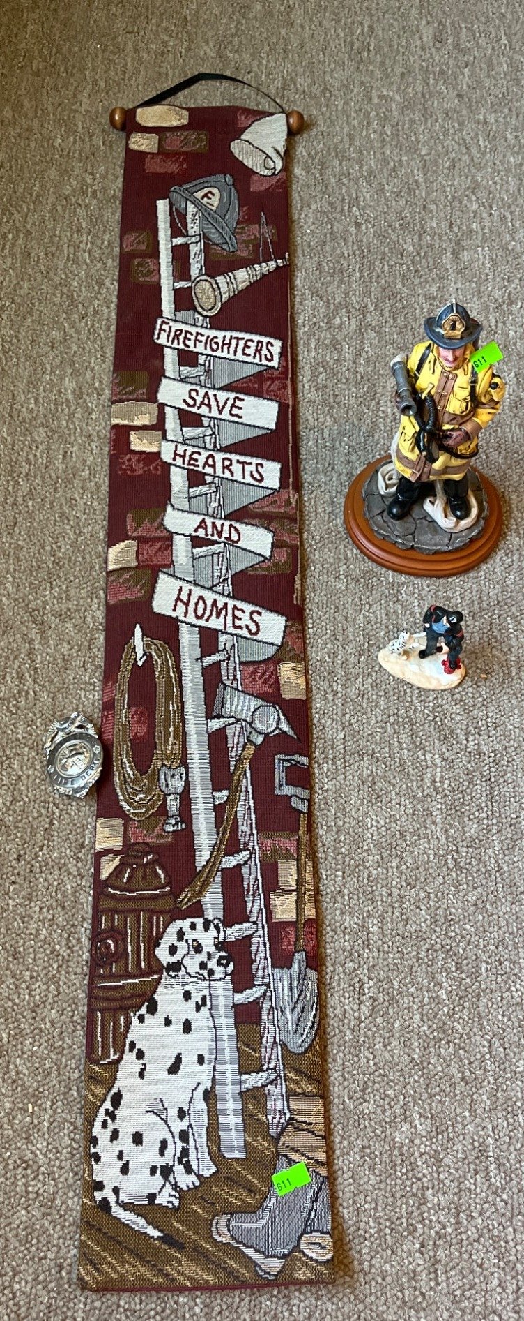 611 Firefighting-Themed Figurines and Hanging Tapestry