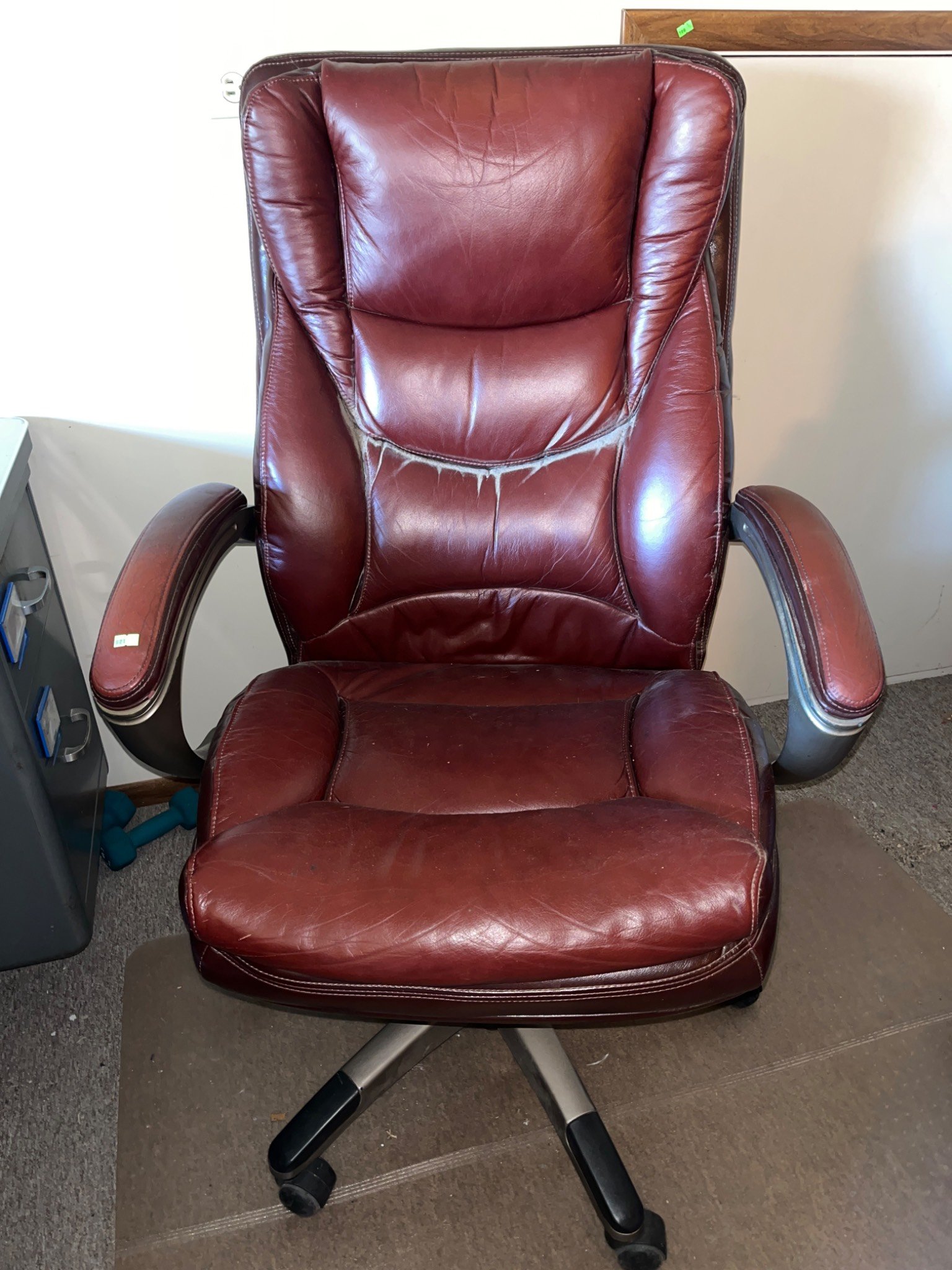 621 Brown Faux Leather Office Chair with Armrests and Swivel Base, 28×23?