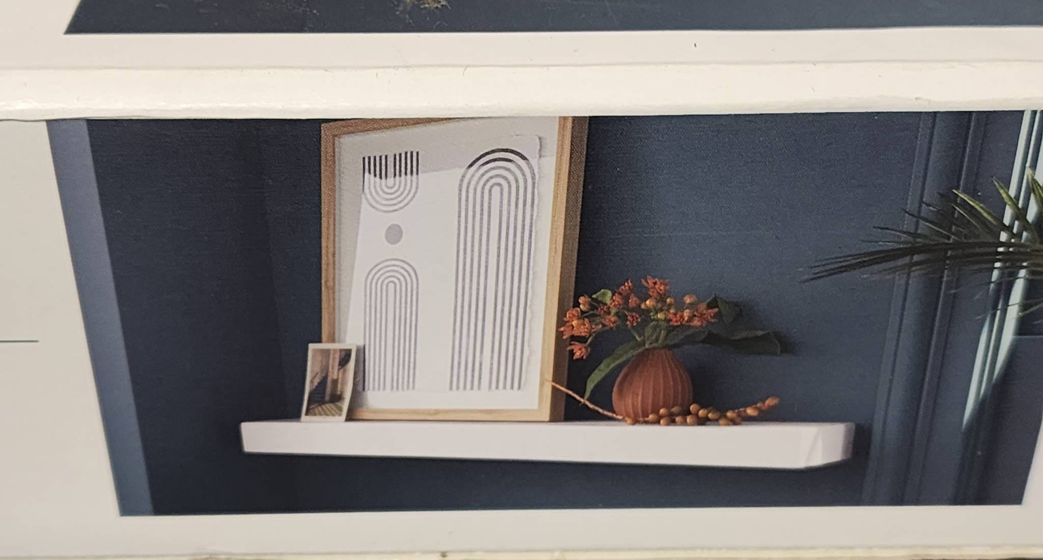 100 36-In. Black Wood Finish Floating Shelf with Hidden Rod Bracket has a small ding on edge