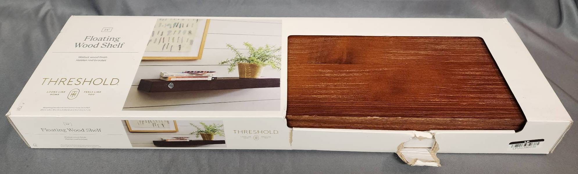 106 24-Inch Floating Shelf with Walnut Wood Finish scuffing on the edge
