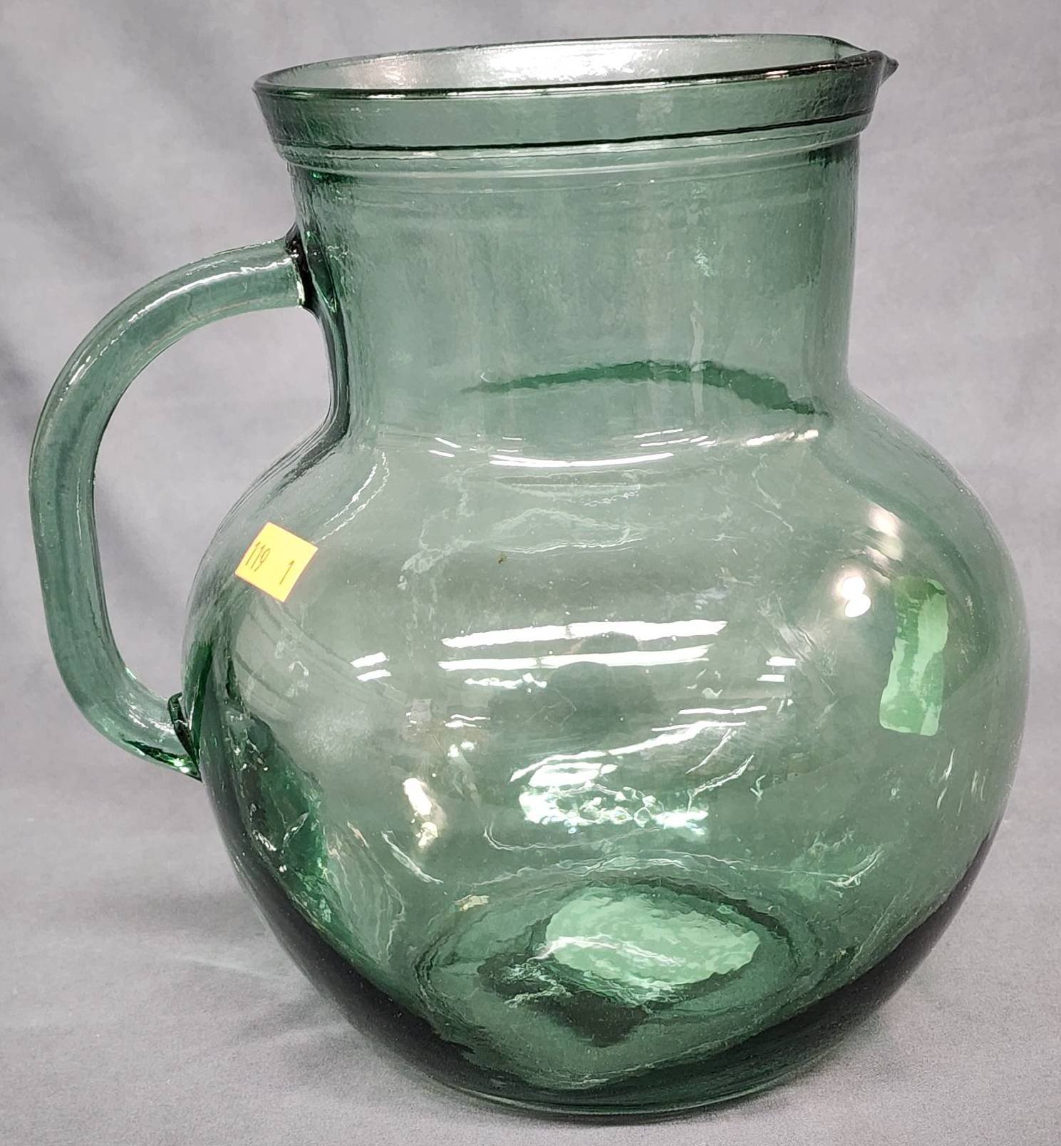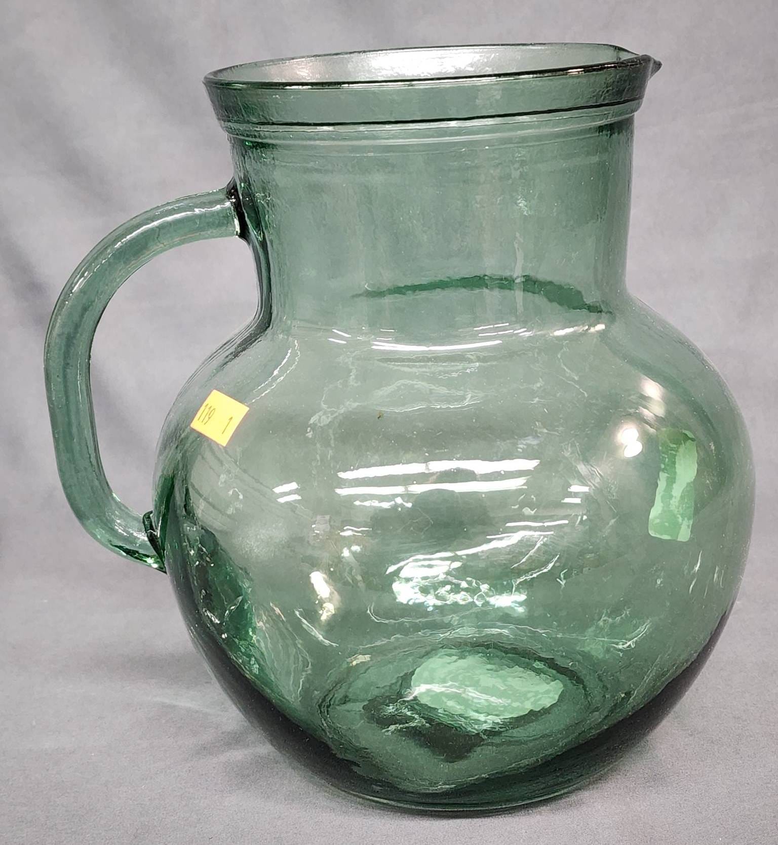 111 Amber-colored glass vase (10?) paired with terracotta and white ceramic dish (8?). Vase