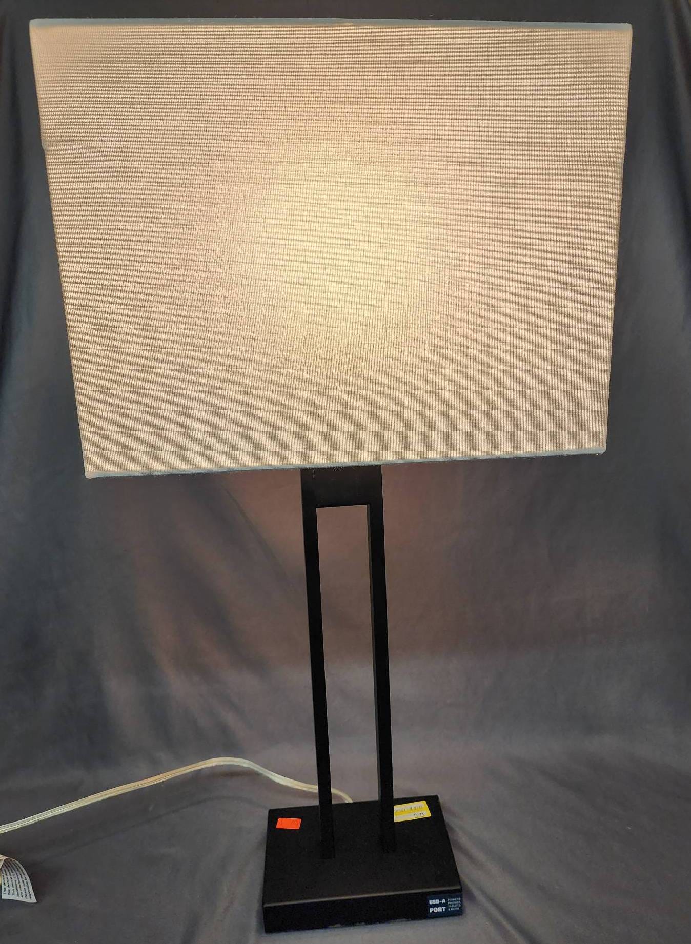 167 Rectangular Black Metal Table Lamp with USB-A Port and White Shade