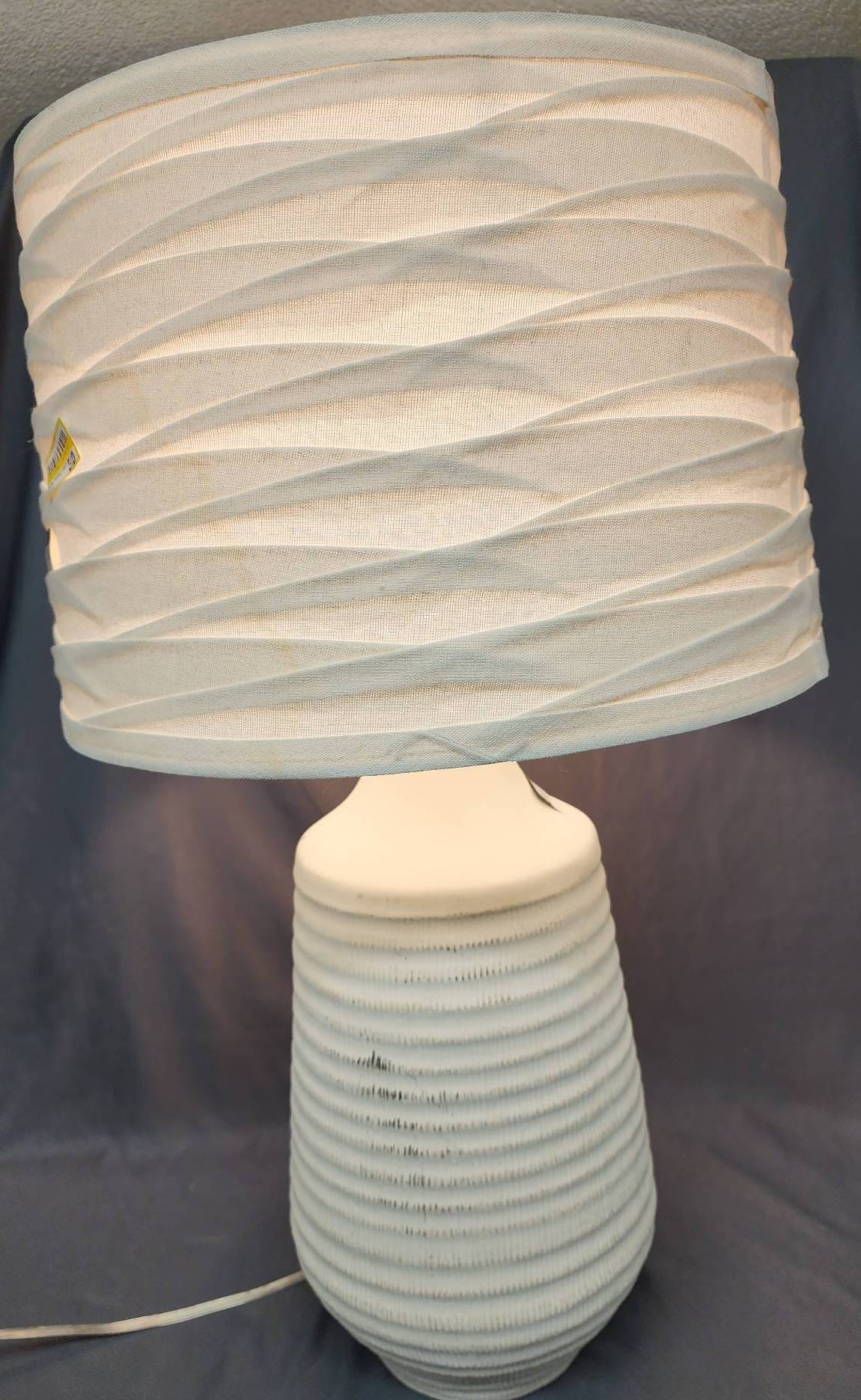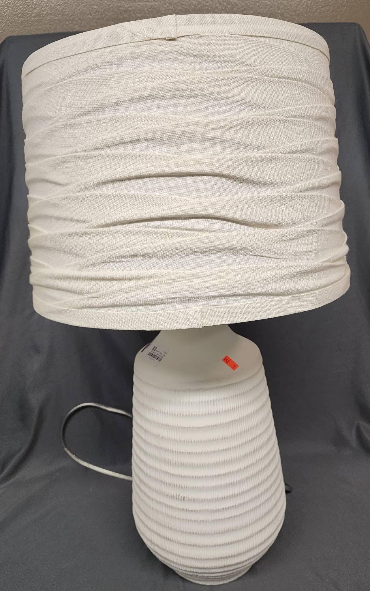 165 White Ceramic Table Lamp with Textured Body and Shade, 26? Height
