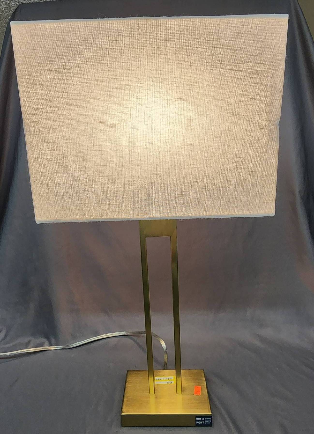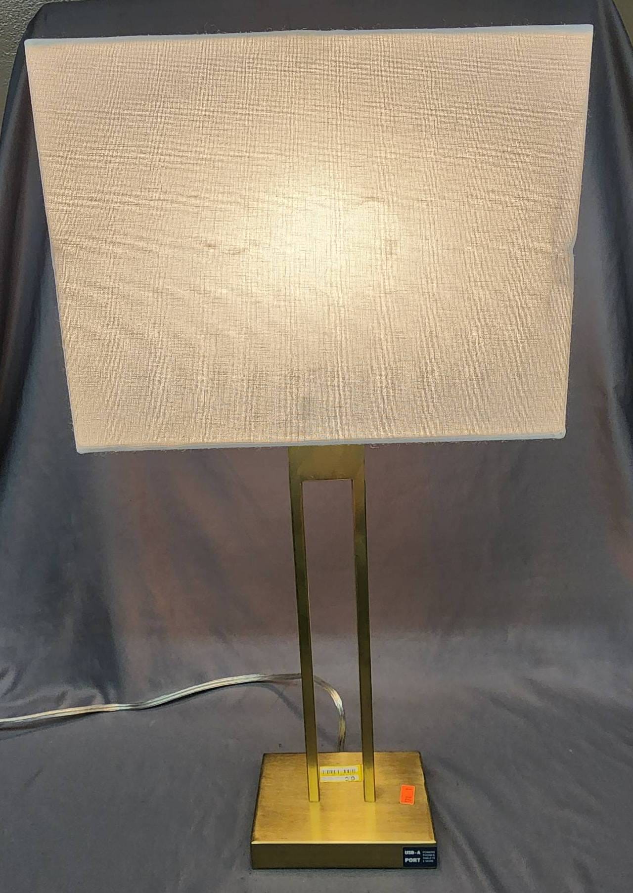 170 Brass-Finish Table Lamp with Rectangular Fabric Shade 24? H shade has damage