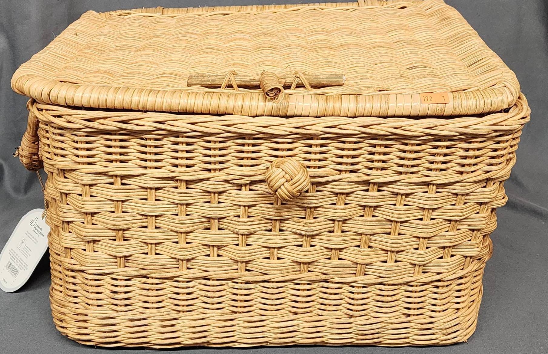 190 Woven Natural Fiber Basket With Hinged Lid by Threshold has broken loop