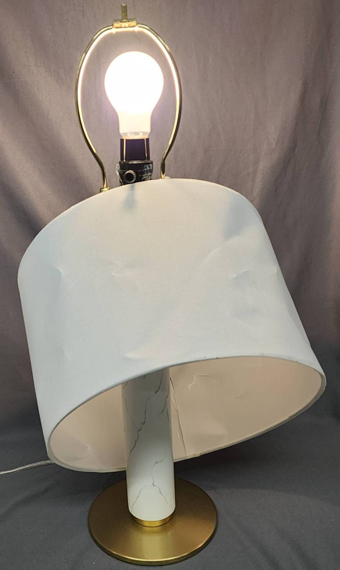 160 Table Lamp with Fabric Shade and Sculpted Base 21? H has scuffing