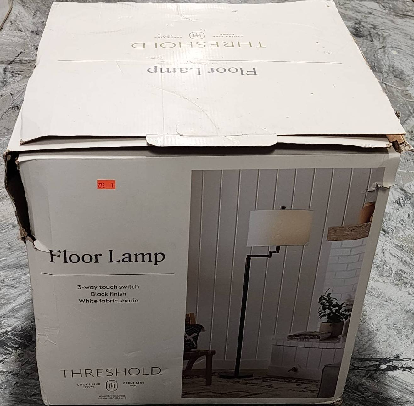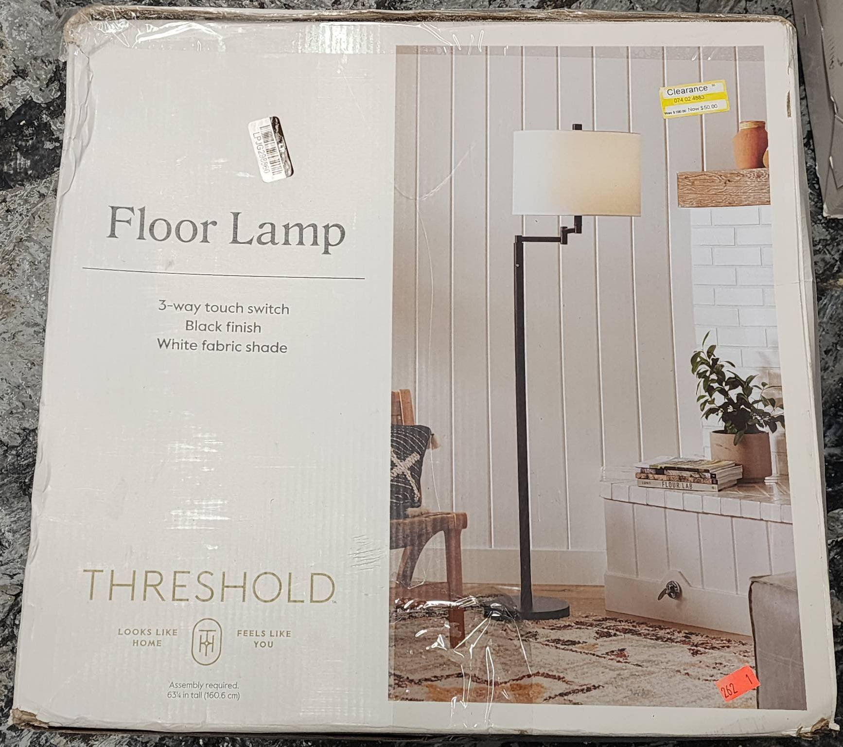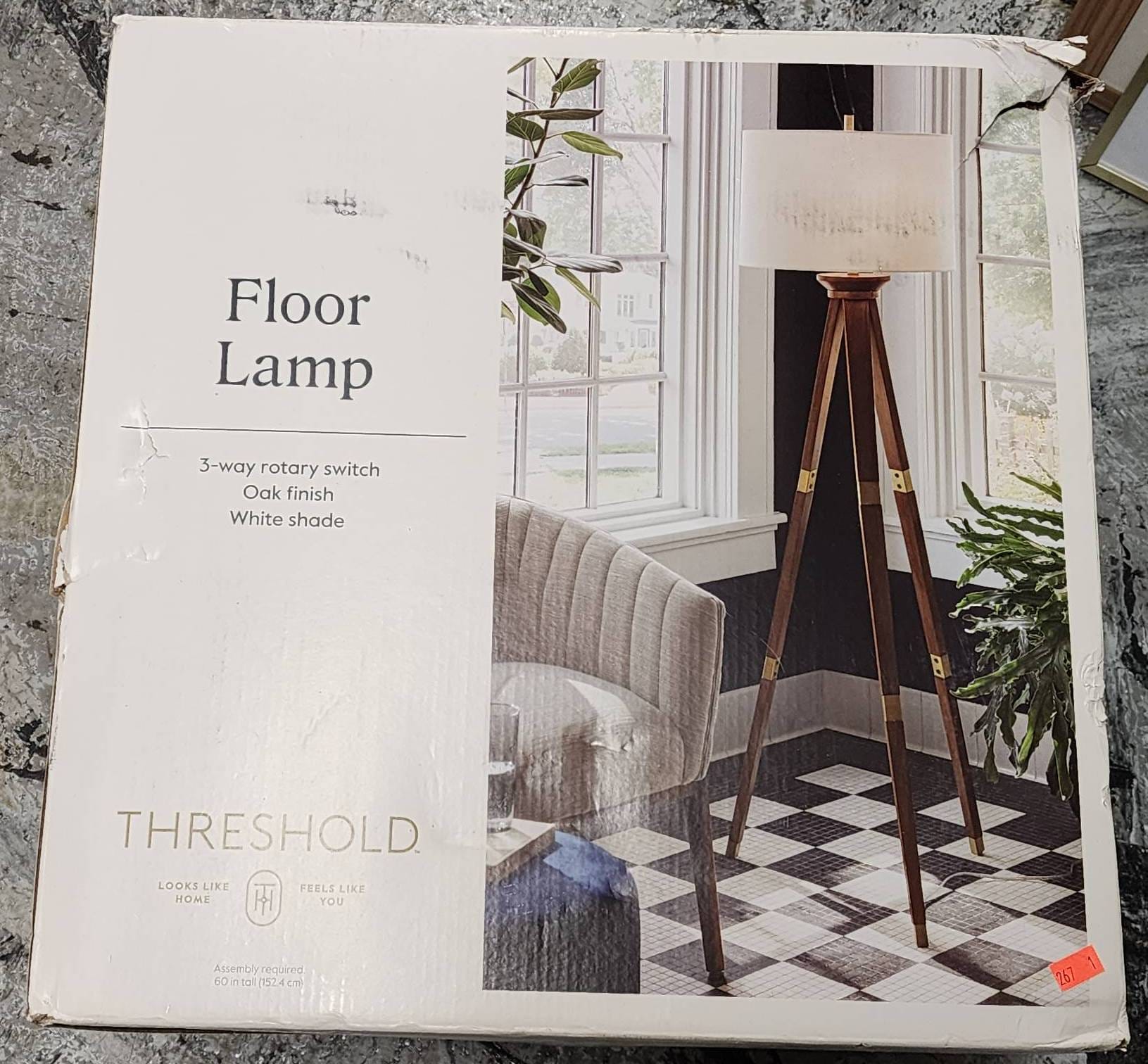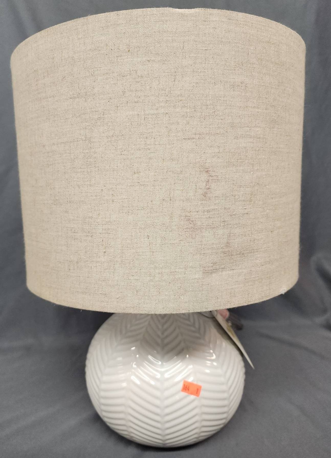 164 Threshold White Ceramic Table Lamp with Chevron Pattern Base and Fabric Shade 16.5? H shade has minor damage
