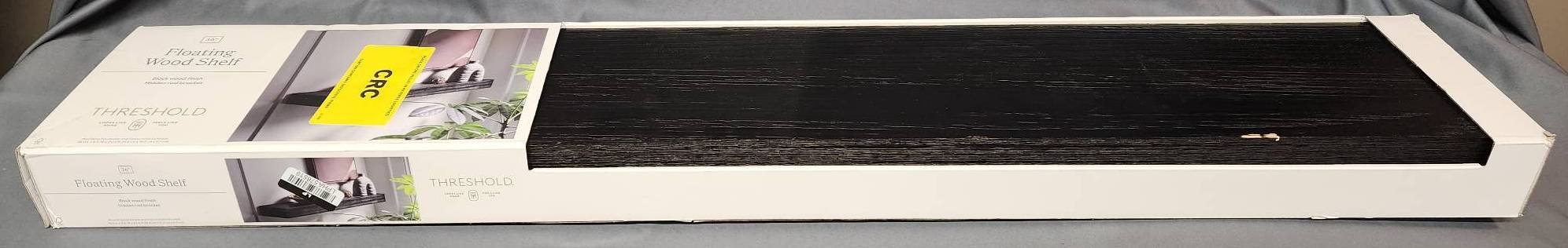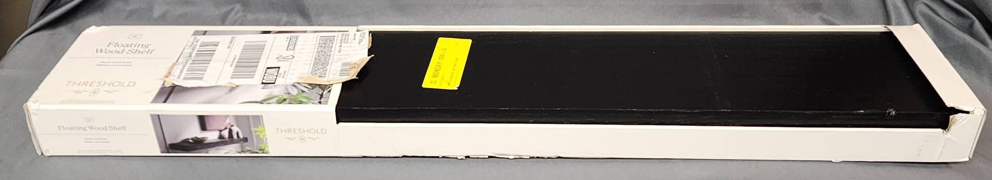 102 36-Inch Floating Black Wood Shelf with Hidden Rod Bracket has scuffing on edge