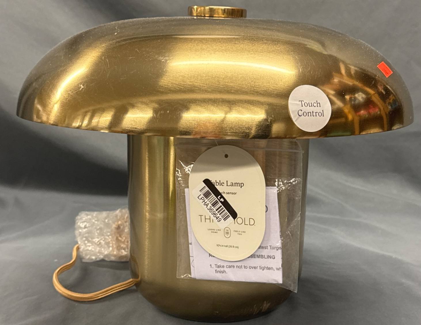 166 19? Brass-Tone Metal Touch Lamp With Dome Shade