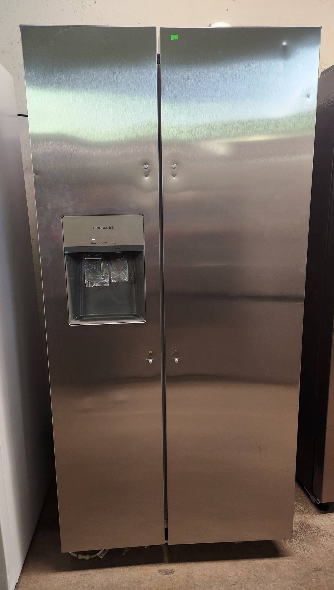 9 Frigidaire 21.4 cu. ft. Garage Ready Counter Depth Side-By-Side Refrigerator in Fingerprint-Resistant Stainless Look model #FRSG2115AV has minor dings on front and side