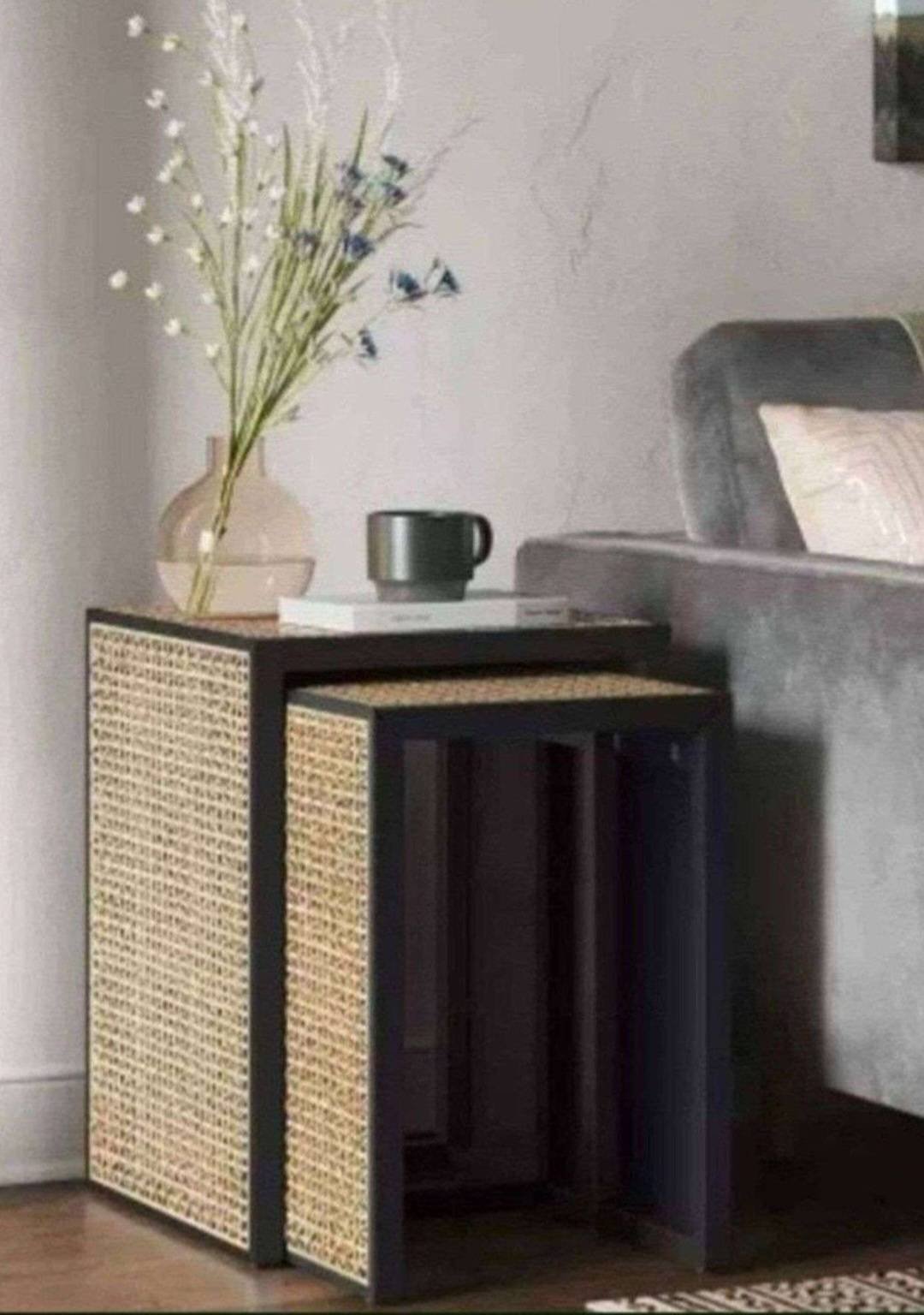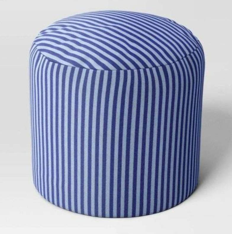67 Room Essentials Pouf with Striped Blue Upholstery, 16-Inch