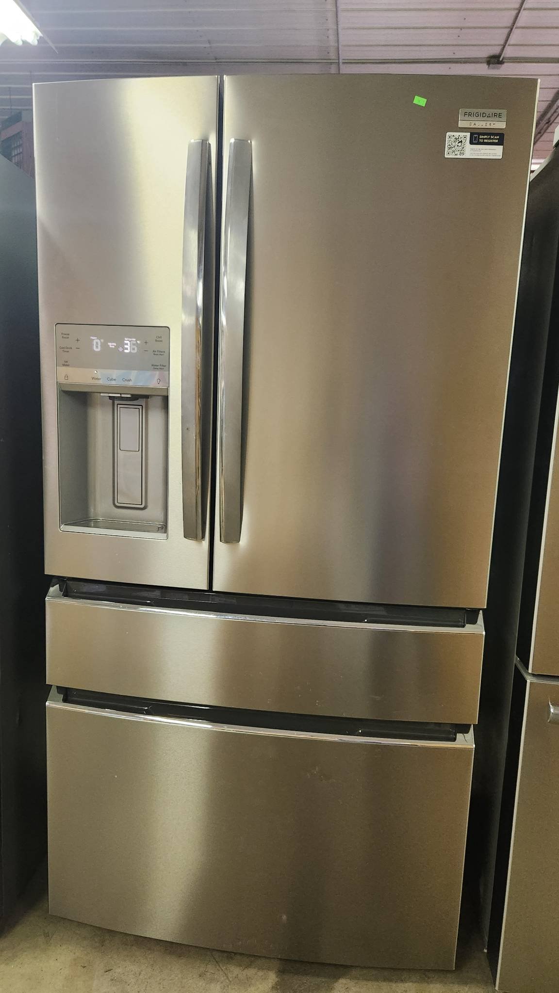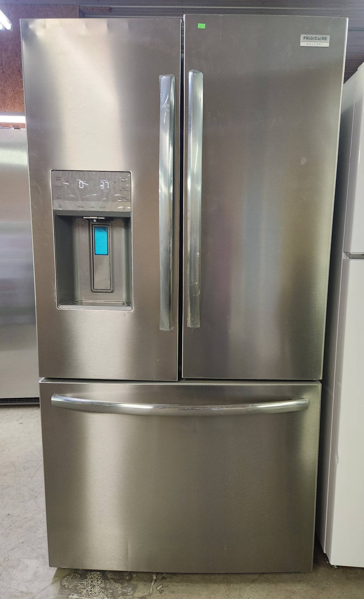 15 Frigidaire Gallery Standard-Depth 27.8-cu ft 3 -Door 36-in Wide French Door refrigerator model # GRFS2853AFL has minor scuffing and dings model #