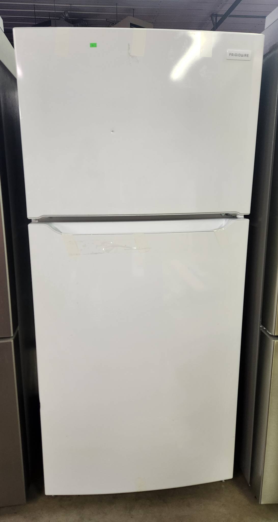 19 Frigidaire 30 in. 18.3 cu. ft. Top Freezer Refrigerator in White Model # FFTR1835VWD has minor dings on front