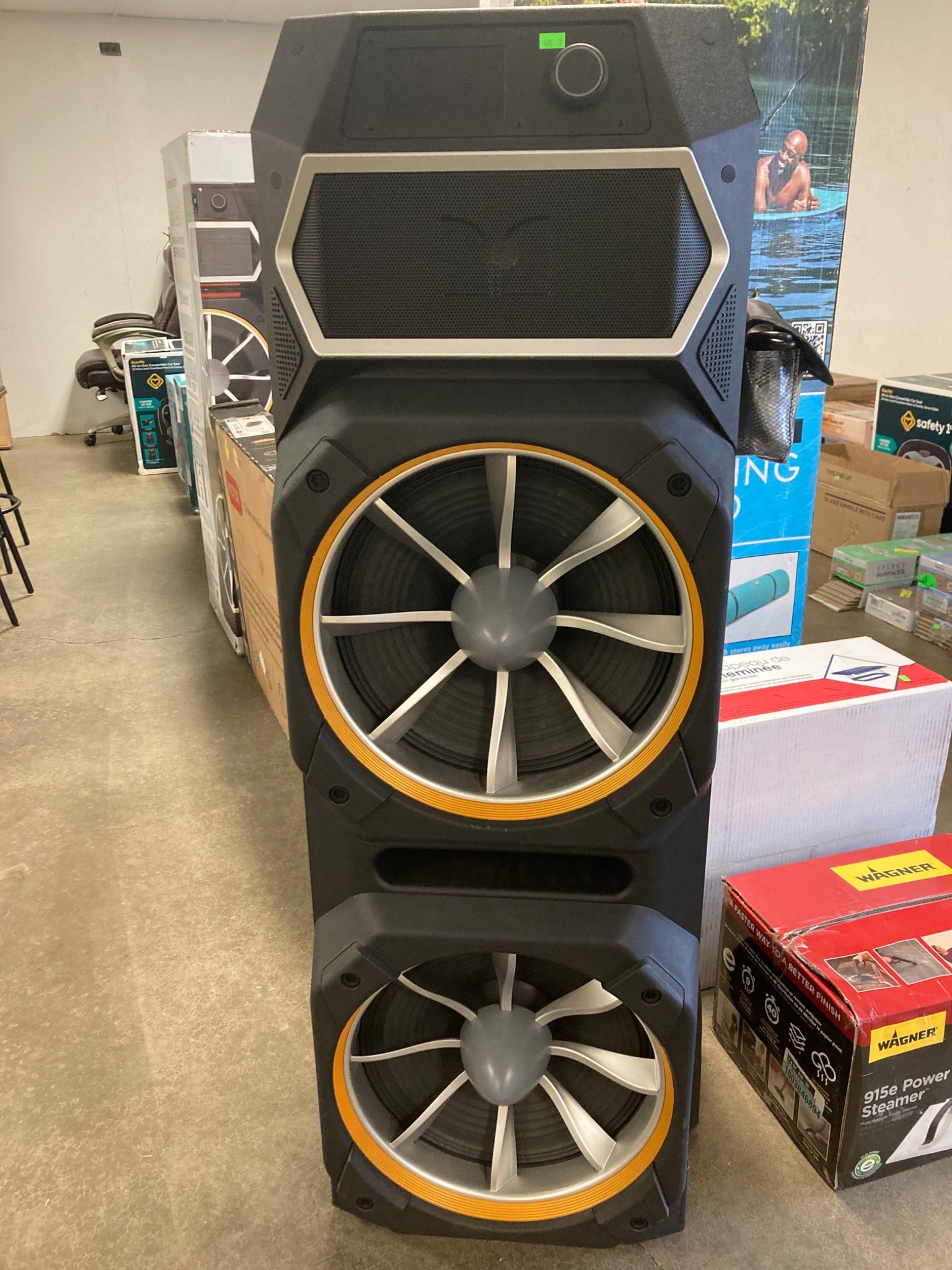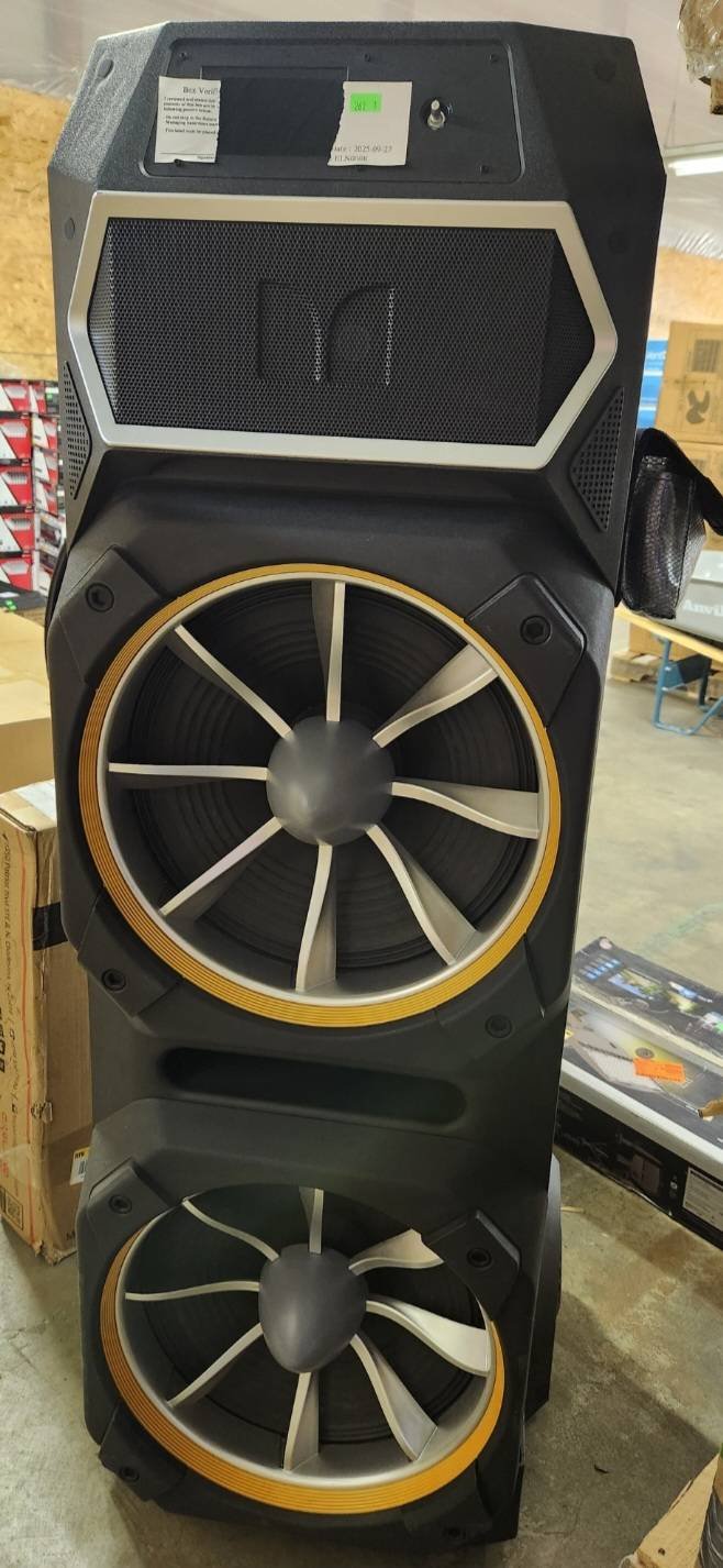 5004 Portable Wireless Speaker With Dual Woofers and Control Panel no power cord but powers on