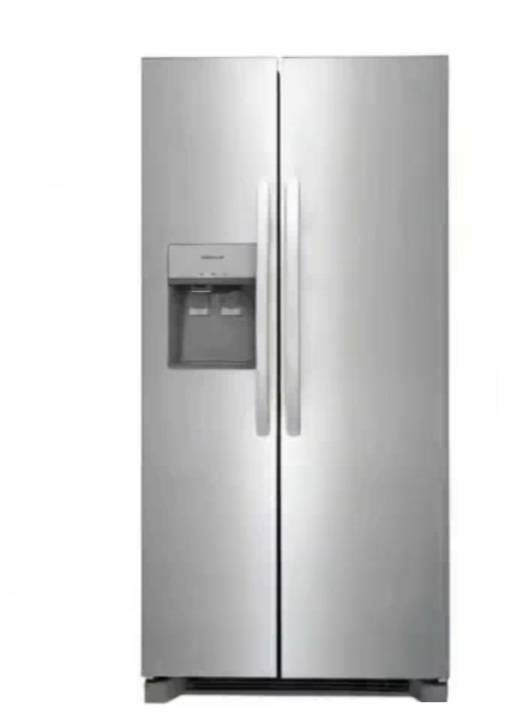 10 Frigidaire 22 Cu. Ft. 33? Standard Depth Side by Side Refrigerator model #FRSS2323ASA without door handles has minor dings