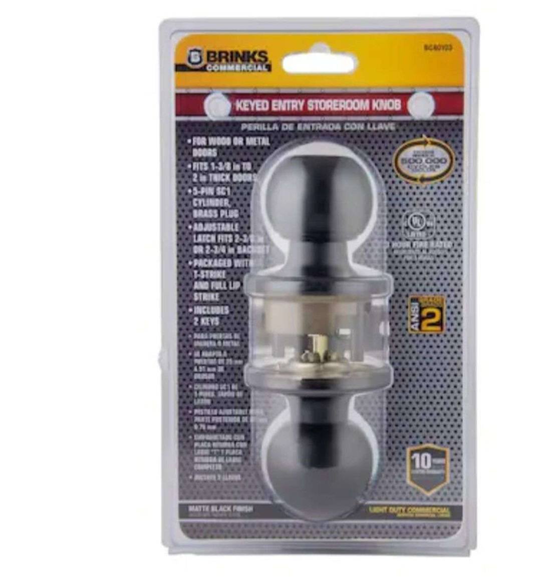 85 Brinks Commercial Keyed Entry Storeroom door Knob, Matte Black Finish