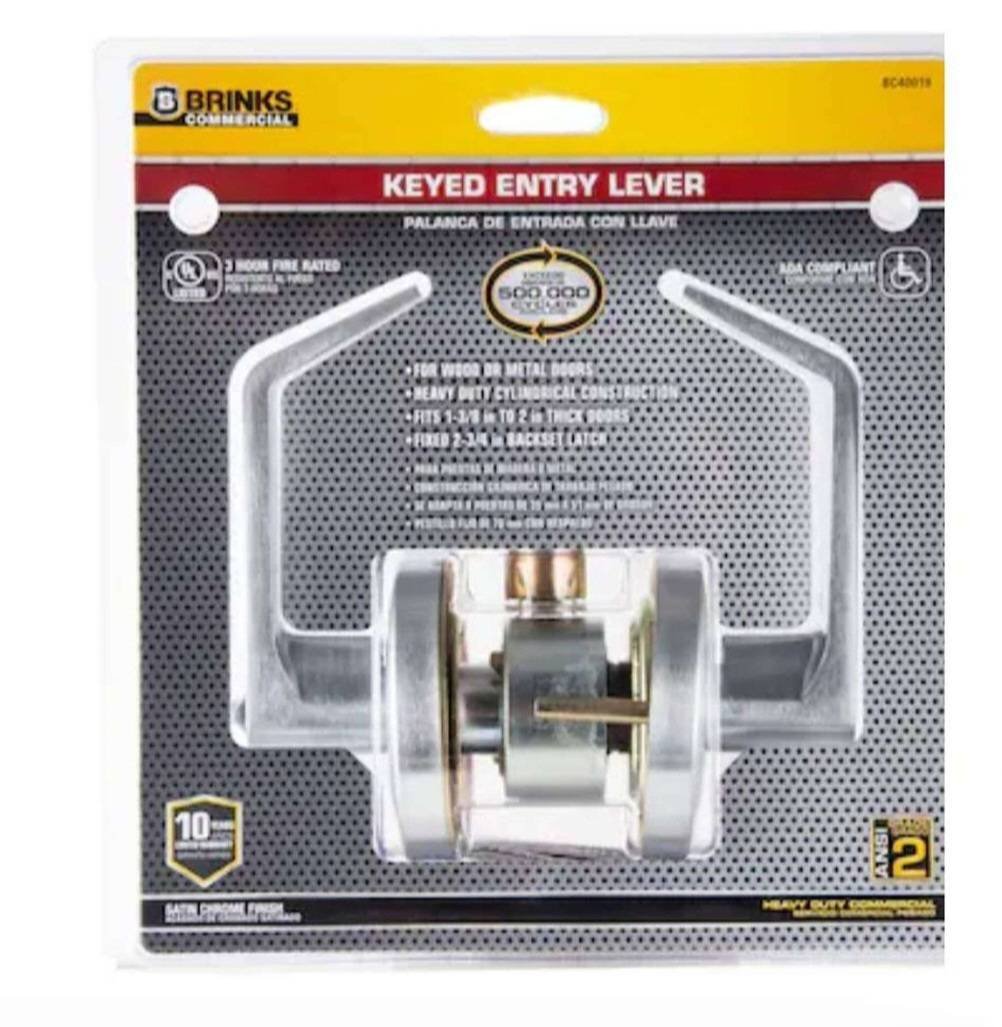 92 Brinks Commercial Heavy Duty Keyed Entry Lever, Satin Chrome Finish