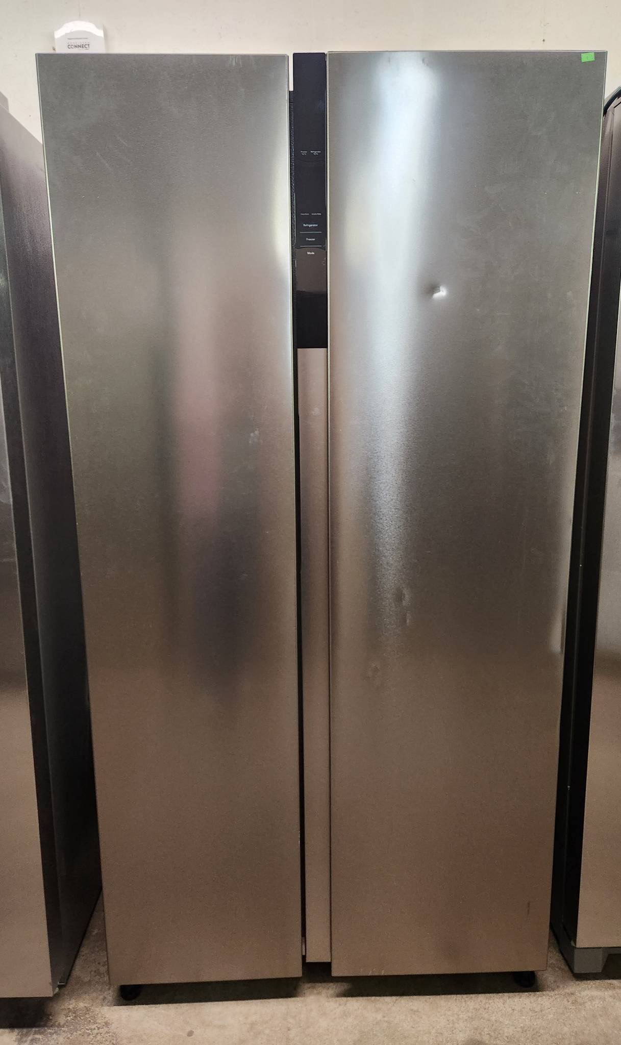 16 Frigidaire 36 Inch Wide 27.8 Cu. Ft. Energy Star Certified French Door Refrigerator with Temp Drawer model #GRMC2273CF03 has small ding on freezer door