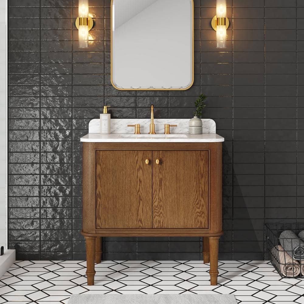 531002 HOME DECORATORS COLLECTION - Collette 36 in. Single Sink Cinnamon Oak Bath Vanity with Carrara White Marble Top (Assembled)