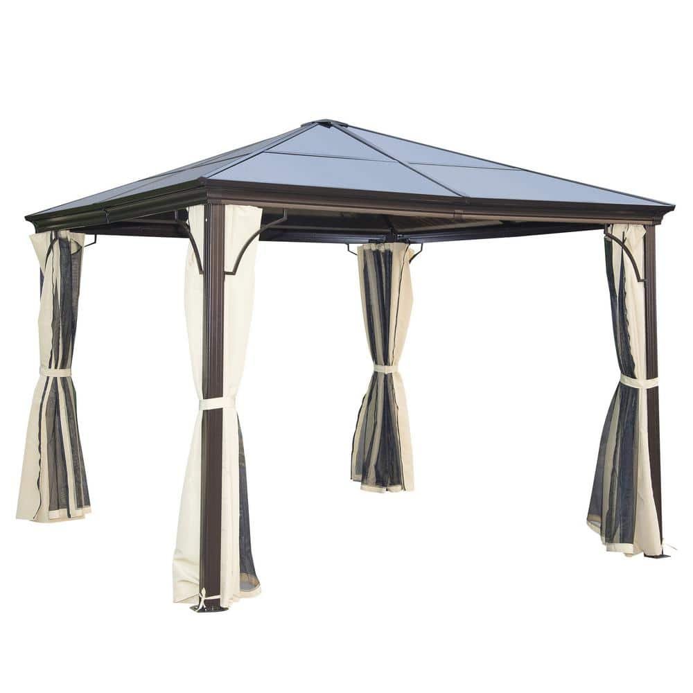 531009 OUTSUNNY - 10 ft. x 10 ft. Aluminum Frame and Polycarbonate Hardtop Gazebo Canopy Cover with Mesh Net Curtains and Durability