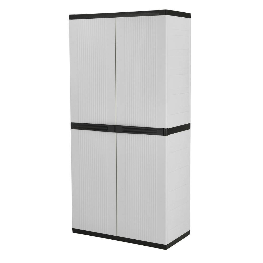 531032 HDX - Premium Grey Resin Freestanding Cabinet Combo: 35 in.x71.7 in.x18.5 in. 4-Shelf & 26.9 in.x33.8 in.x15.8 in. 2-Shelf