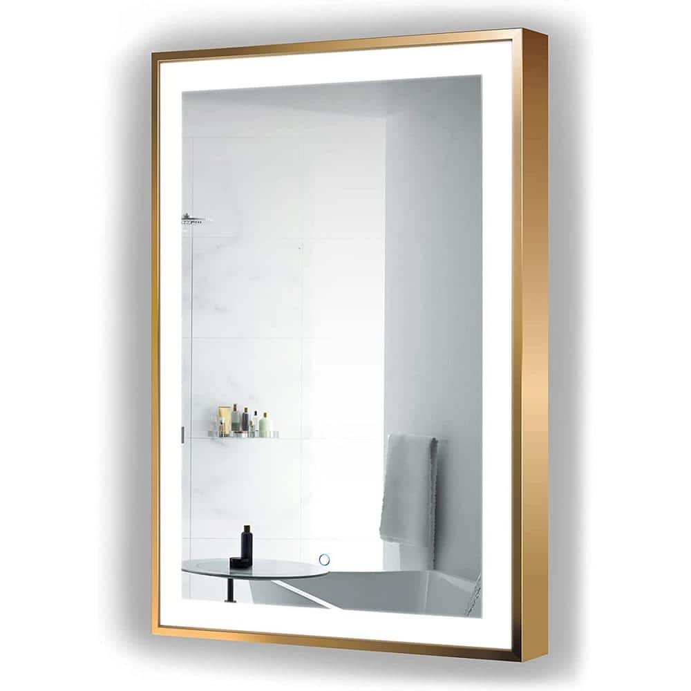 531035 ELLO&ALLO - 24 in. W x 40 in. H Rectangular Aluminum Framed LED Light with 3 Color and Anti-Fog Wall Bathroom Vanity Mirror in Gold