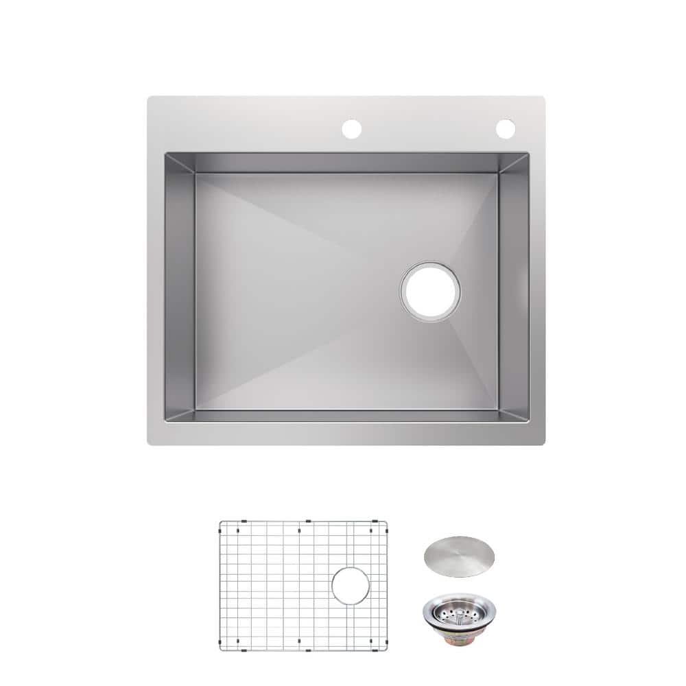 531036 GLACIER BAY - Professional Zero Radius 30 in. Drop-In Single Bowl 16 Gauge Stainless Steel Kitchen Sink with Accessories